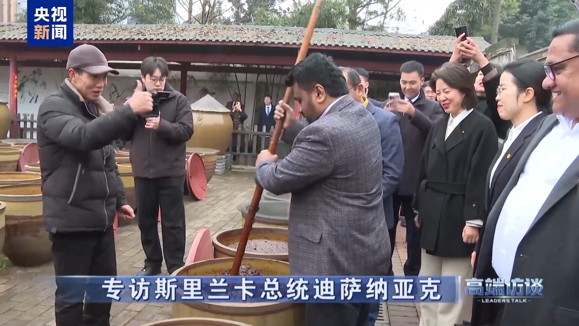 迪萨纳亚克总统对斯中两国在农业、电力、新能源等领域的合作高度关注。在四川,他前往多个相关企业考察。在战旗村,迪萨纳亚克总统尝试搅拌豆瓣酱,“沉浸式”感受中国的新农村生活,还观看川剧变脸表演,体验中国文化。在农业科技中心,他认真听取专家讲解,品尝该中心培育的新鲜生菜。