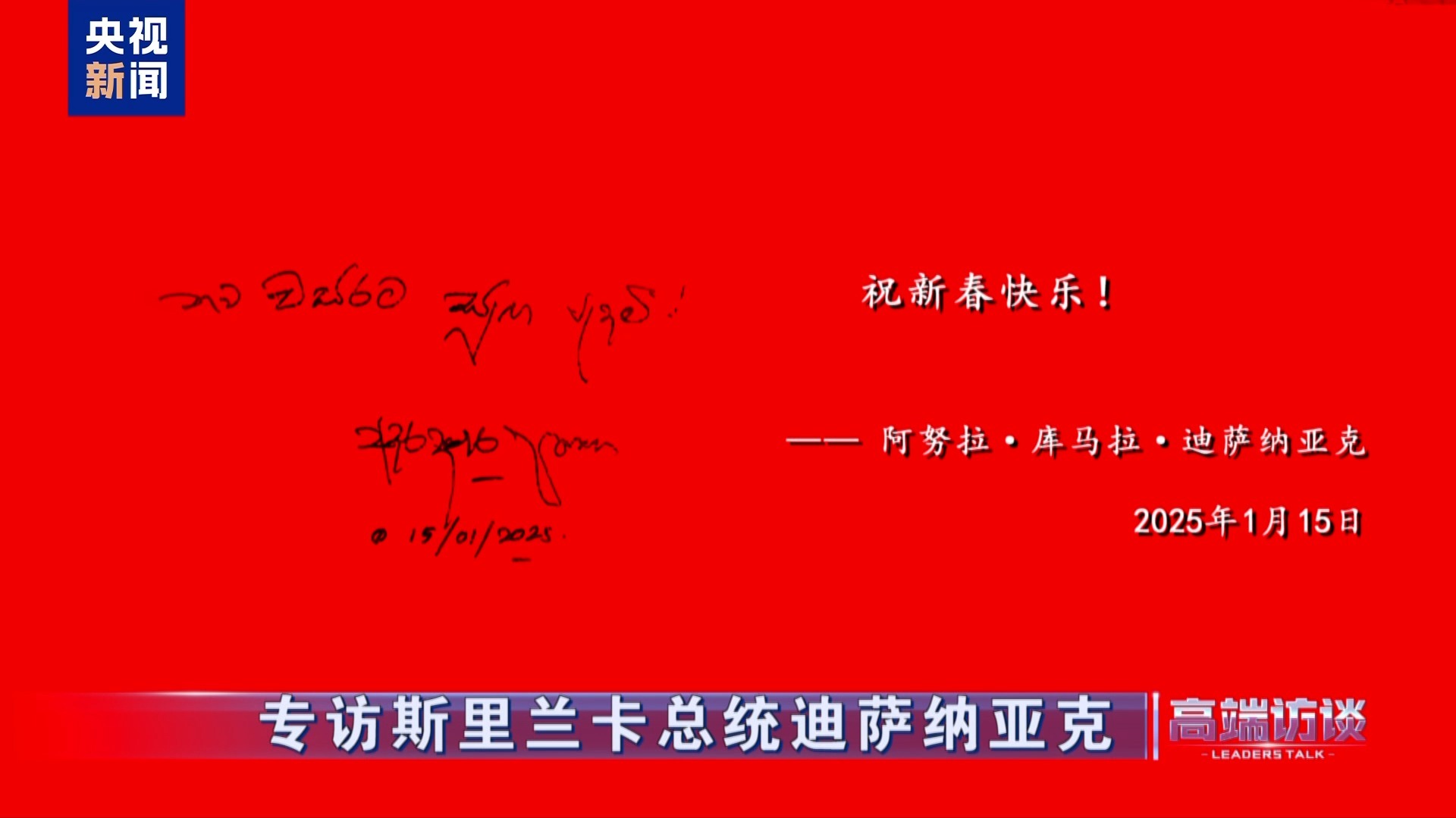 斯里兰卡总统迪萨纳亚克在接受总台专访后题词。