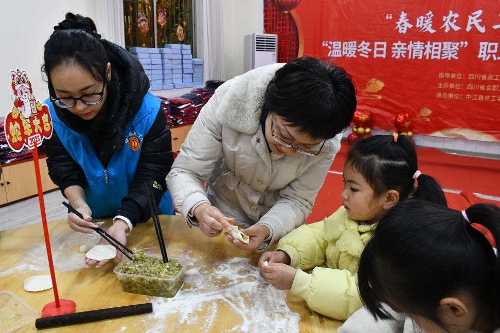 送冬衣、包饺子、吃团圆饭……1月23日,“春暖农民工”服务行动—2025年四川省德阳市“温暖冬日 亲情相聚”新就业形态劳动者及农民工留守子女专场关爱活动在中江县春香艺术培训学校(留守儿童艺术团)开展。