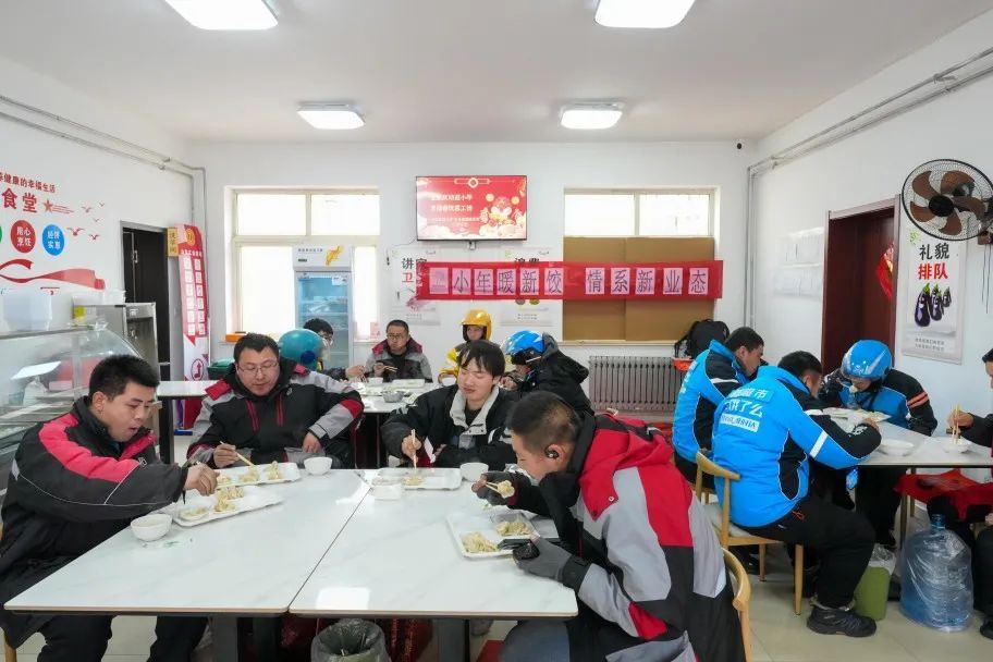 当“爱新餐”遇上小年,市北区总工会免费送来“五福香饺”。2024 年,市北区总工会在项城路社区工会驿站精心推出9.9元两荤四素一汤“爱新餐”,每日13:30至15:00供应,旨在为新就业形态劳动者们提供一份实惠又可口的餐食保障。为了让新就业形态劳动者感受到节日的氛围和浓浓的关爱,市北区总工会特意将平日的“爱新餐”换成了寓意美好的“五福香饺”。和面、剁馅儿、包饺子……随着一声嘹亮的“饺子开锅了”,一盘盘热气腾腾、肚皮圆滚滚的“五福香饺”端上了餐桌,暖胃的同时,更将工会对新就业形态劳动者的关爱之情切实送到了大家的心坎上。