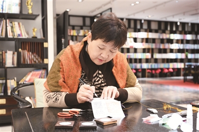 曹玉清告诉记者,制作掐丝珐琅需要彩砂、粘丝胶、喷壶、镊子、剪刀、铲刀、捋丝板、金丝等材料。确定掐丝图案后,首先要将确定好的图案绘在纸上,纸张篇幅由作品大小决定,要注意图案的比例适合、线条流畅。然后将金属细丝按照拓印好的花纹弯曲转折,掐成图案粘在画板上,称为掐丝。先进行捋丝,然后点上胶水,通过掐、掰、弯、折叠、卷翻等技巧制作出美丽的花纹。“看似普通的金丝,在一番弯折处理后,奇迹般地构成了一个又一个精巧细致的图案,散发出一种立体的、昂扬流畅的美感。然后进行‘点蓝’,点蓝不是一步到位那么简单,要反复三四次,直到釉料与丝高度一致才算大功告成。”曹玉清说。