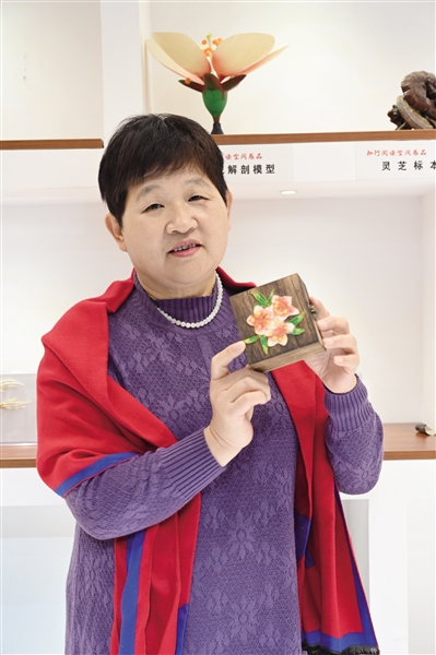 一个小首饰盒、一把小勺子,原本平凡的一块木材在曹玉清手里逐渐完成了华丽蜕变。曹玉清是北京市房山区拱辰街道的工会主席,一有时间她就会去离家不远的文化馆做一些木制的手把件、小饰品。锯子、夹子、木板、木条,这些都是曹玉清经常用到的工具和材料。