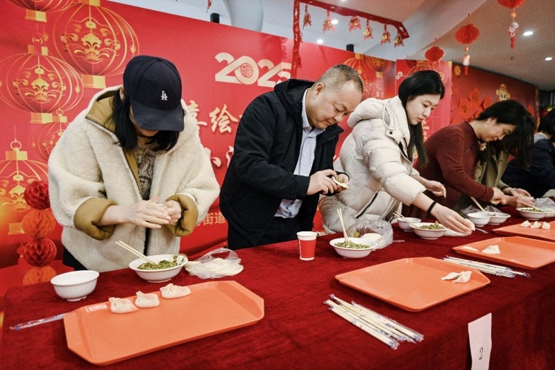 日前,为弘扬中华优秀传统文化,丰富坚守在一线工作的留杭过年职工精神文化生活,浙江省杭州市拱墅区小河街道工会特开展“包福饺、写福字、送福气、送温暖、送文化”等一系列暖心活动。