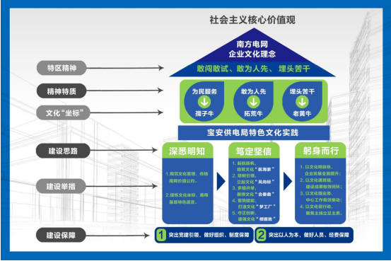 2023年,宝安供电局在公司党建部指导下,结合深圳特区精神内涵和宝安区位发展历史,积极探索南方电网“知行”文化在基层的有效承接,形成符合时代精神、饱含南网基因、承接深供特色、具有宝安特点的文化实践——“知行南网 犇腾宝安”荣获南方电网公司企业文化示范单位,安全、法治文化示范点复评通过。宝安局关于企业文化建设的“知行”文化建设的实践路径,对于基层供电局,具有较强参考意义。