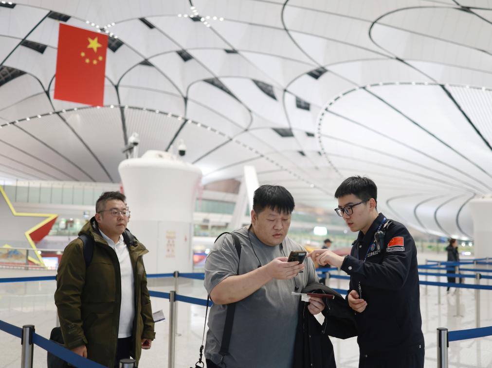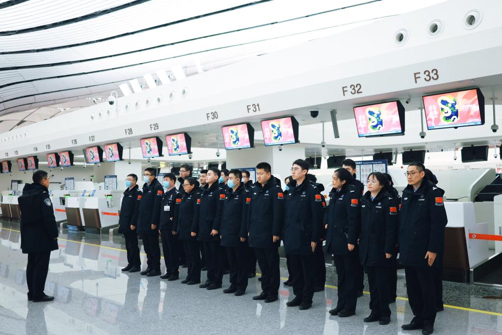 北京大兴机场边检站迎来客流高峰,民警们24小时轮流执勤,保障旅客平安顺畅通关。