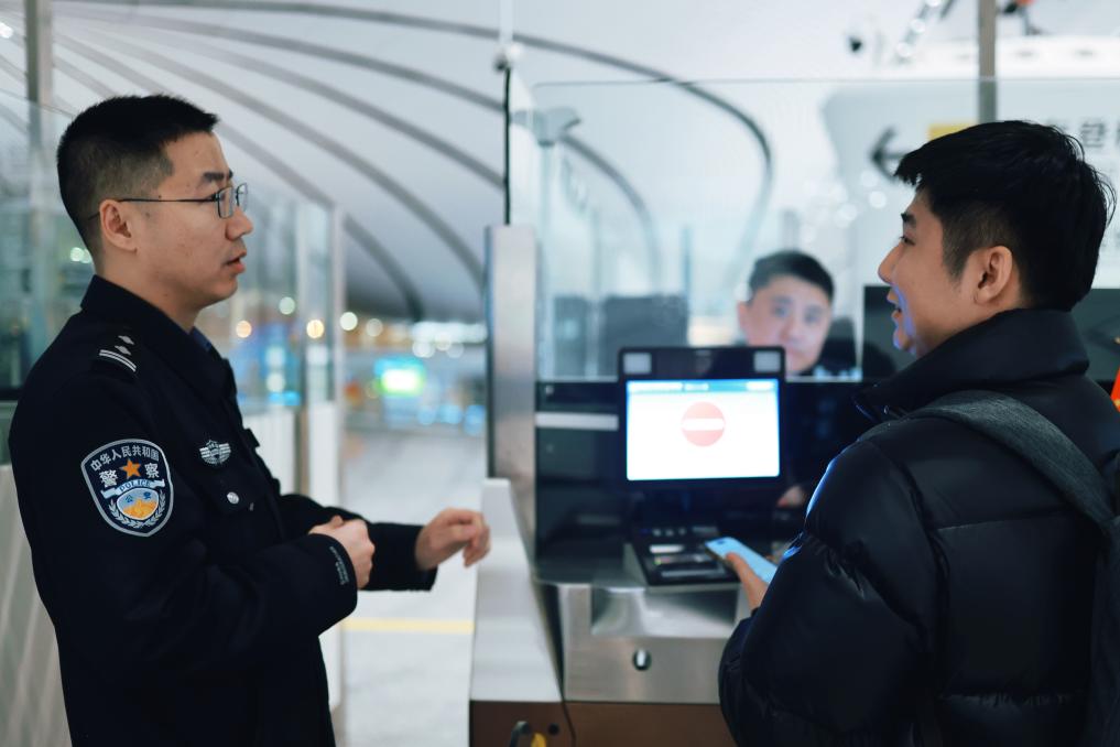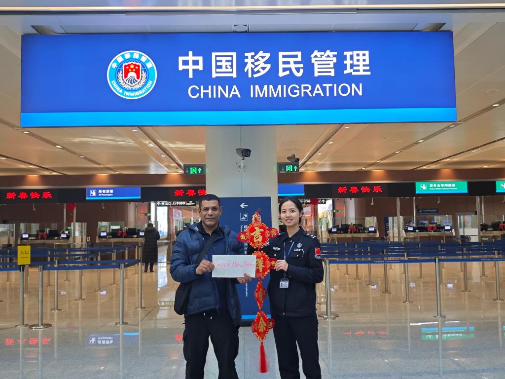 “欢迎回家!”“过年好!”“春节快乐!”移民管理警察的一声声问候,是旅客入境后感受到的第一缕中国温暖。