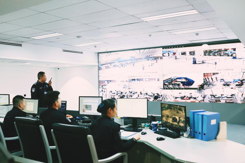 指挥中心的大屏上,机场每个角落的现场视频一目了然。“我们会根据大屏观察出入境现场人流量,及时优化调配警力;适时介入各类案事件、协调联络机场相关部门给予协助,确保口岸始终处于平稳、顺畅的状态。”大兴机场边检站边检处处长李欣说。