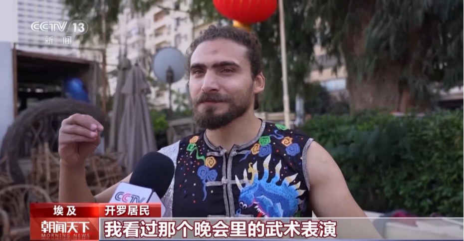 开罗居民:我觉得春节代表着欢乐。你们每年春节都办的那场最大的晚会(春晚)我都会看,我看过那个晚会里的武术表演让人眼花缭乱,我不仅看也会跟着学。