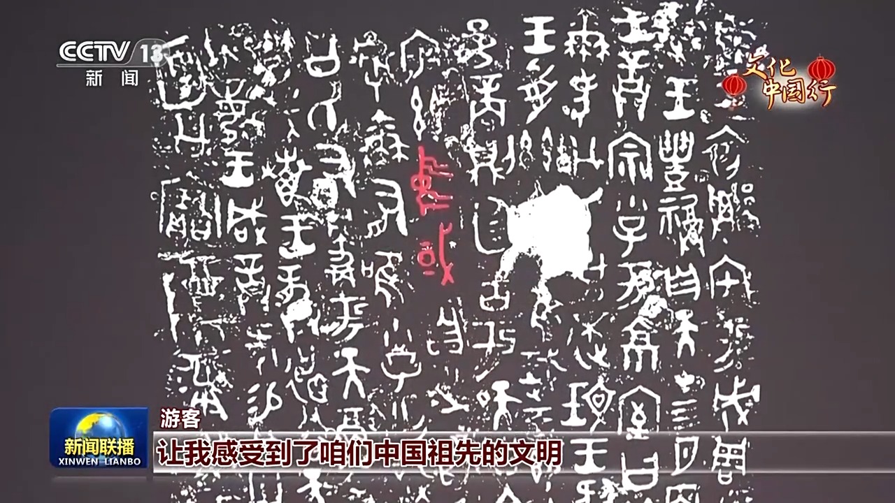 游客:这是我拍到了最早的中国两个字。一进来就非常震撼,让我感受到了咱们中国祖先的文明,作为一个中国人,让我感到非常骄傲和自豪。