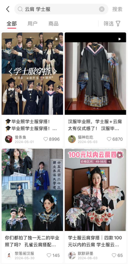 不少年轻人穿着新中式,在博物馆与文物来一场跨越千年的邂逅;在毕业季用云肩与学士服搭配,尽显东方韵味;漫步欧洲街道,与西方文化来一次碰撞。