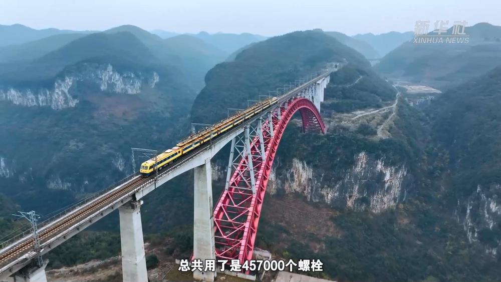 大桥全长810米,主跨352米,轨顶至水面高差约320米,该桥跨度为目前世界上单线铁路同类桥型之最。