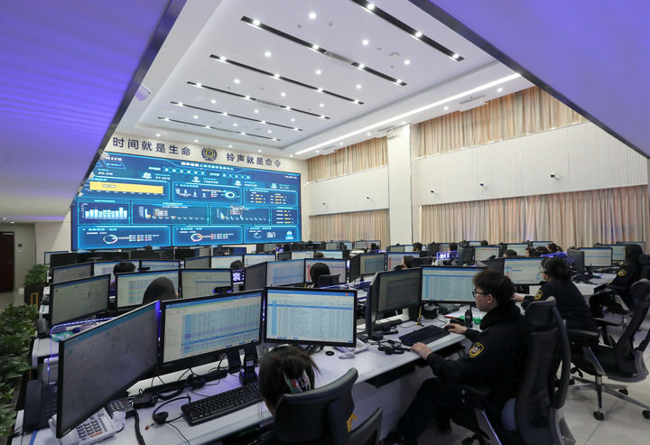 上海市医疗急救调度指挥中心内景。新华社记者 方喆 摄