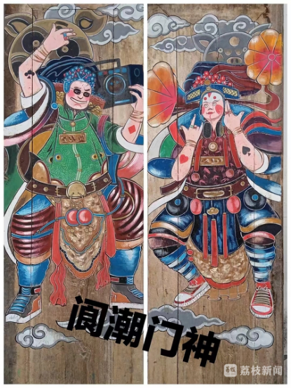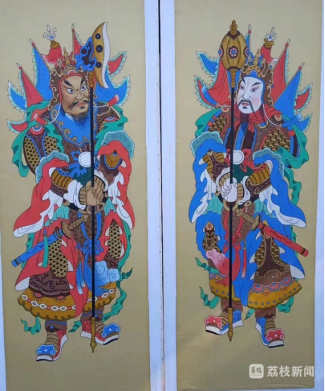 张桅:上古时期,人们会在门上画出《山海经》中神荼、郁垒两位神仙及老虎的像,希望借助他们的力量来驱邪避祸。在汉代,门神形象开始从神祇向人物角色转变,驻守阆中的张飞也被纳入门神的行列,进一步推动了门神的人性化。到了唐代,秦琼和尉迟恭两位大将勇猛善战,他们被绘制成门神的形象以驱邪避鬼,门神的形象更加多样化,钟馗、岳飞、关羽等武将形象也成为了门神。