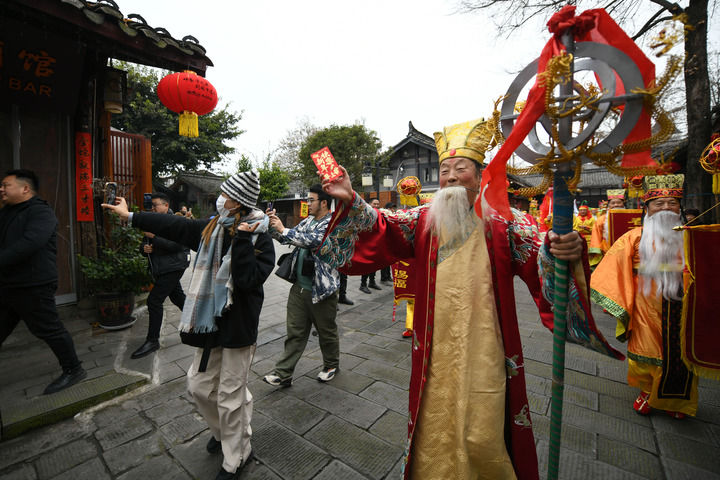 打坱尘、淘檐沟、挂年红、抢银水、看灯戏……在阆中古城过大年,来自天南地北的游客沉浸式感受中国年。
