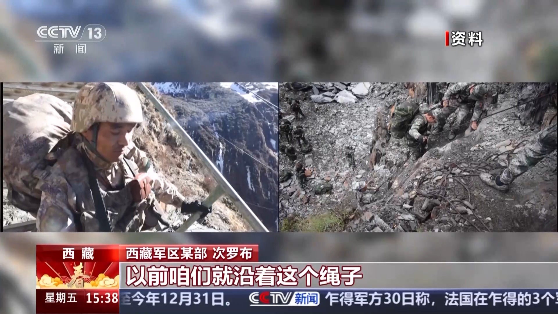 西藏军区某部 次罗布:这个山口叫老虎嘴,以前没有钢架桥。之前是边上一直有绳子挂下来的,以前就沿着绳索然后往上面攀登。