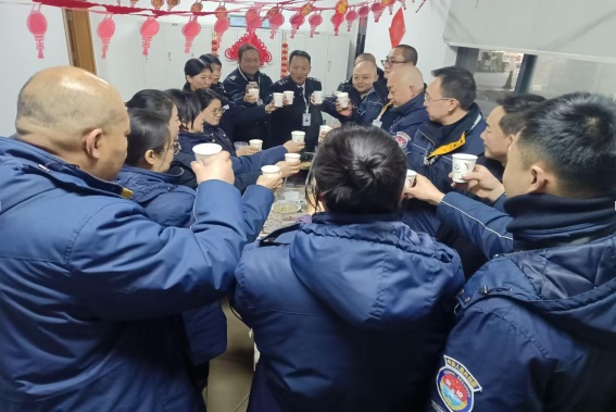 尽管工作繁忙,但大队领导并没有忘记为安检员们送上温暖的关怀。他们精心准备了年夜饭和慰问品,但由于工作的特殊性,安检员们只能轮流就餐,始终保持岗位上有人值守。在短暂的用餐时间里,大家围坐在一起,分享着彼此的故事和祝福,这份简单而温馨的团聚,让他们的心中充满了温暖和力量。
