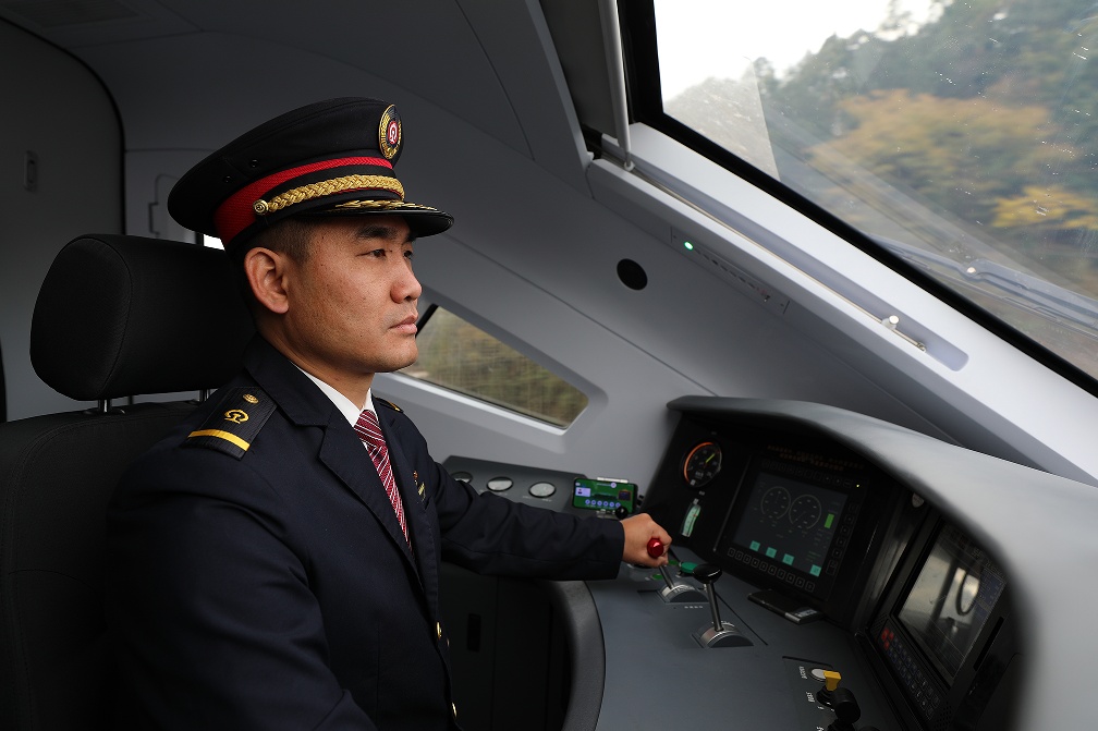 13时37分,随着信号开放、车门关闭,李光登驾驶列车缓缓驶出站台,穿梭在壮丽的山川之间。尽管窗外风景如画,但他的目光始终坚定在前方,全神贯注地驾驶列车。