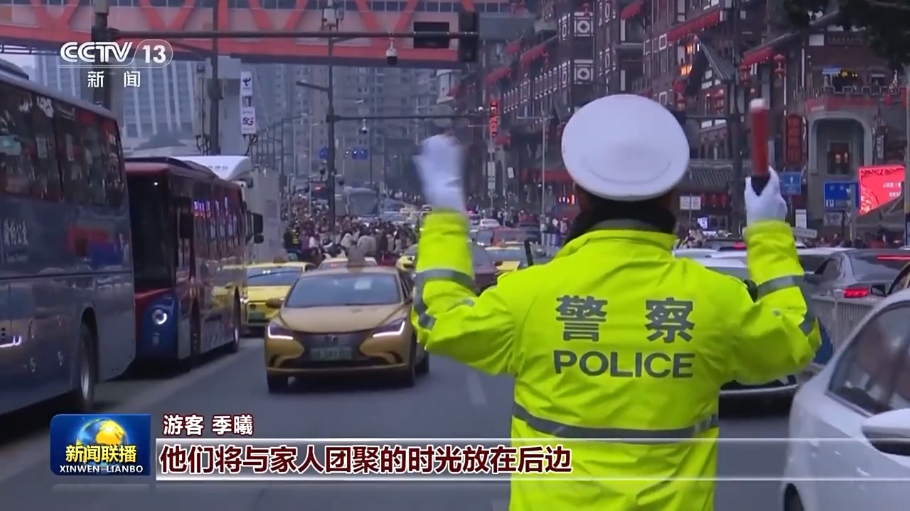游客 季曦:景区很多的公安民警,还有安保人员,非常辛苦。他们将与家人团聚的时光放在后边,将旅客的安全放在第一位,作为旅客来说非常安心与踏实。