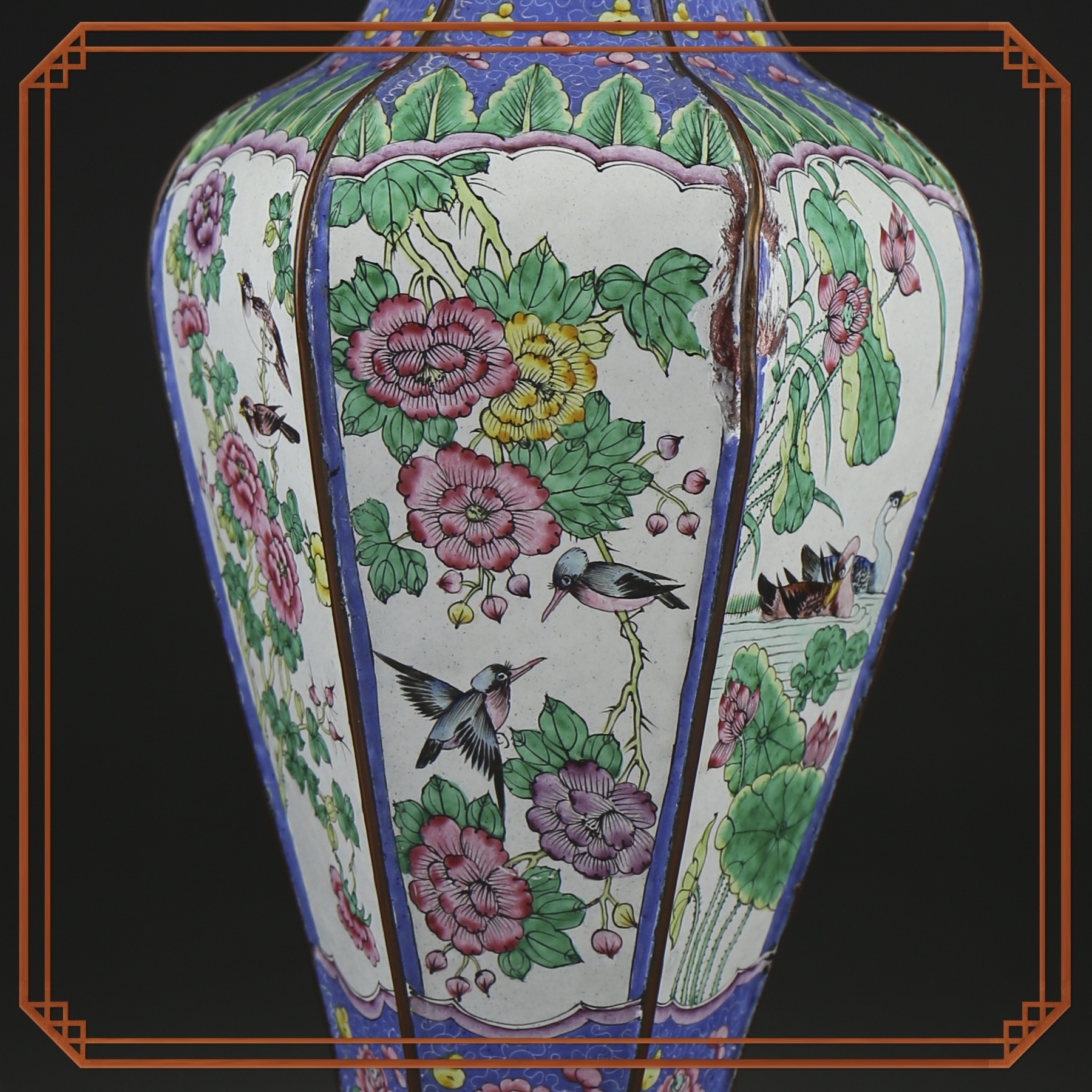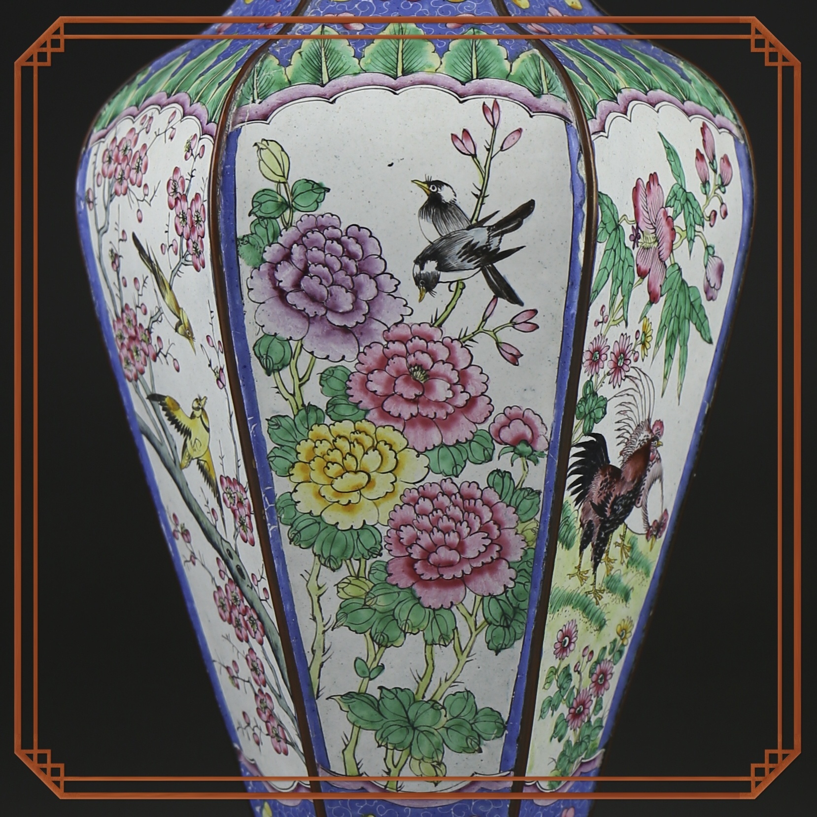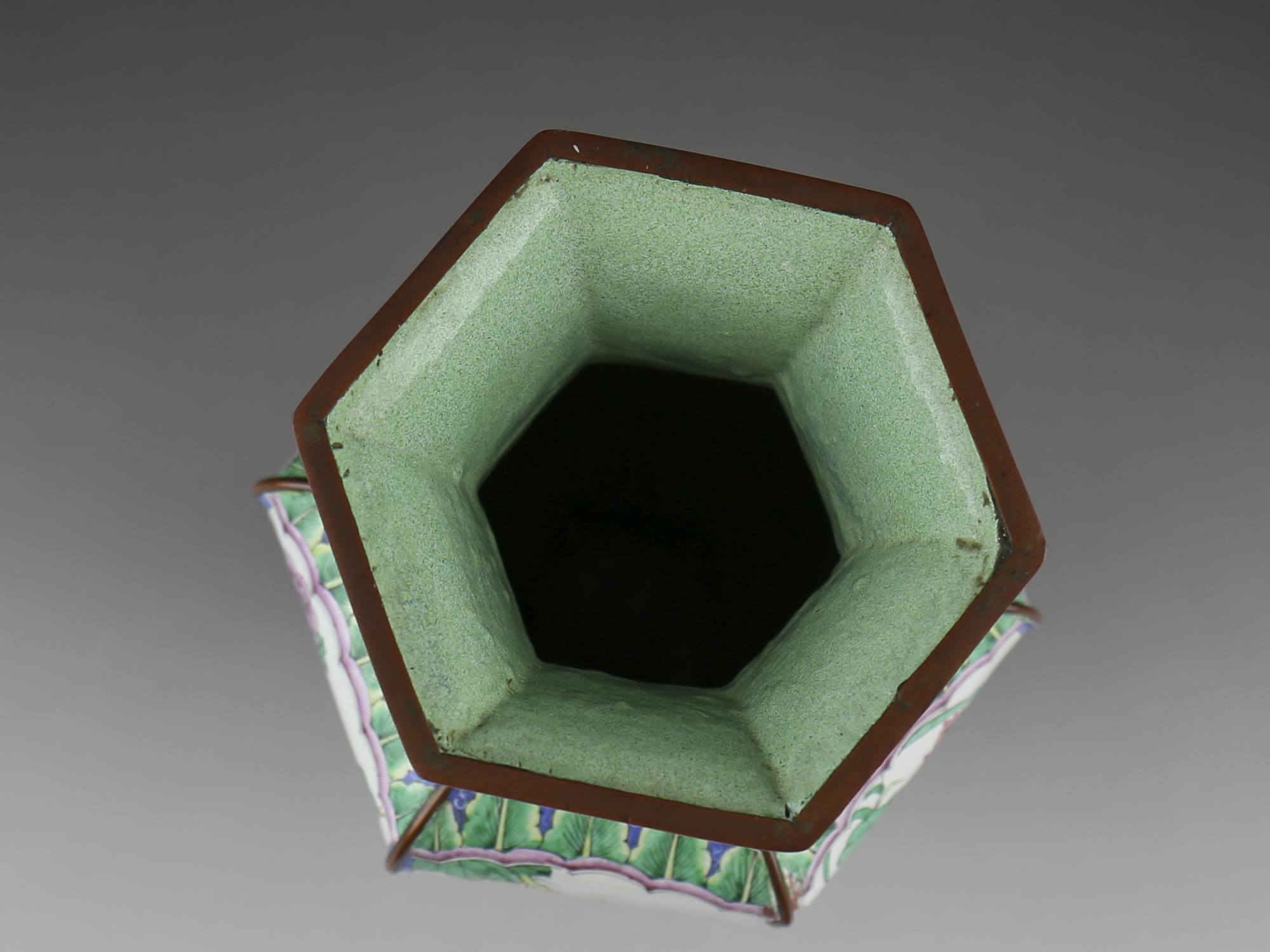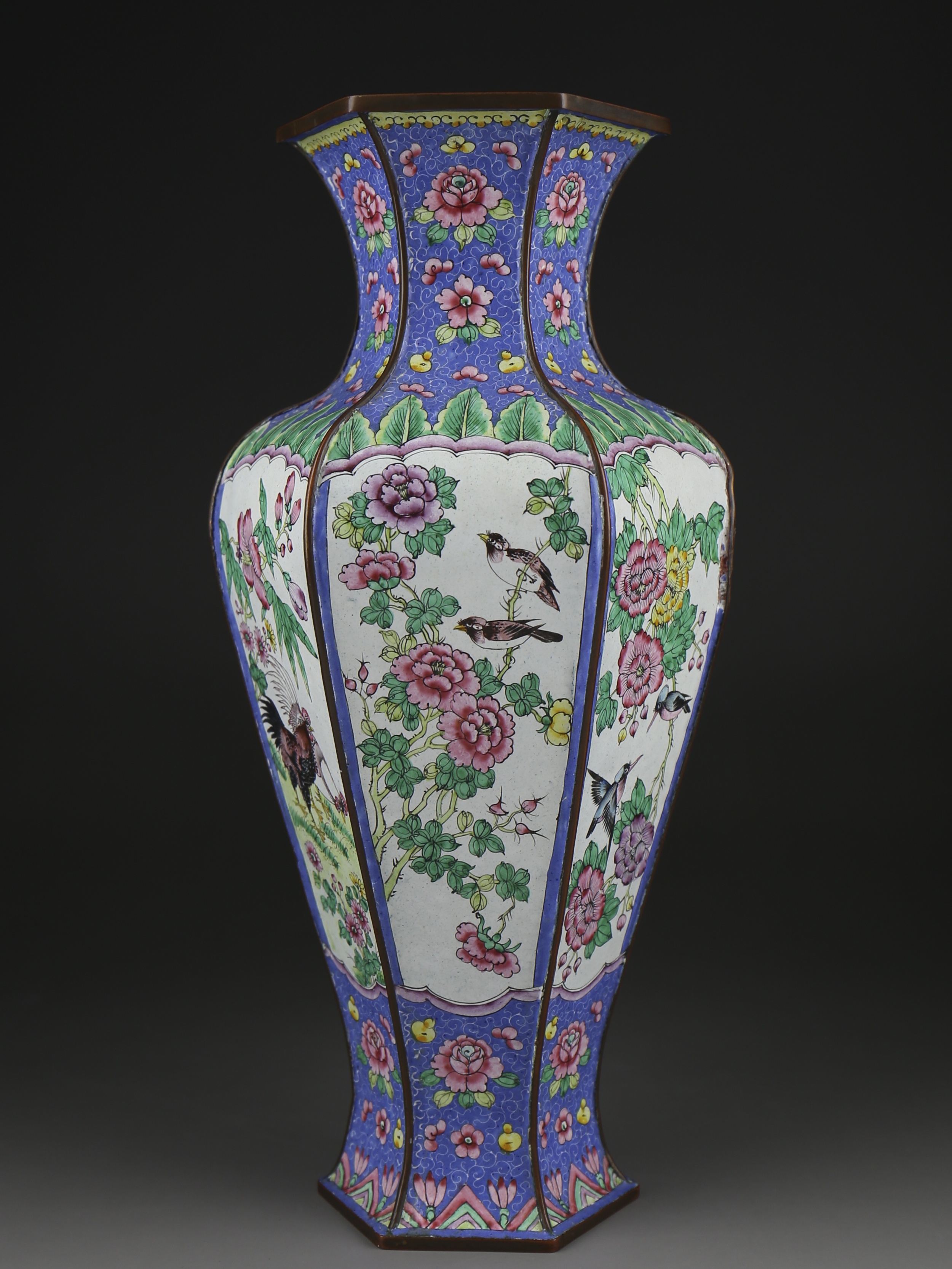 这件清画珐琅花鸟纹六方瓶