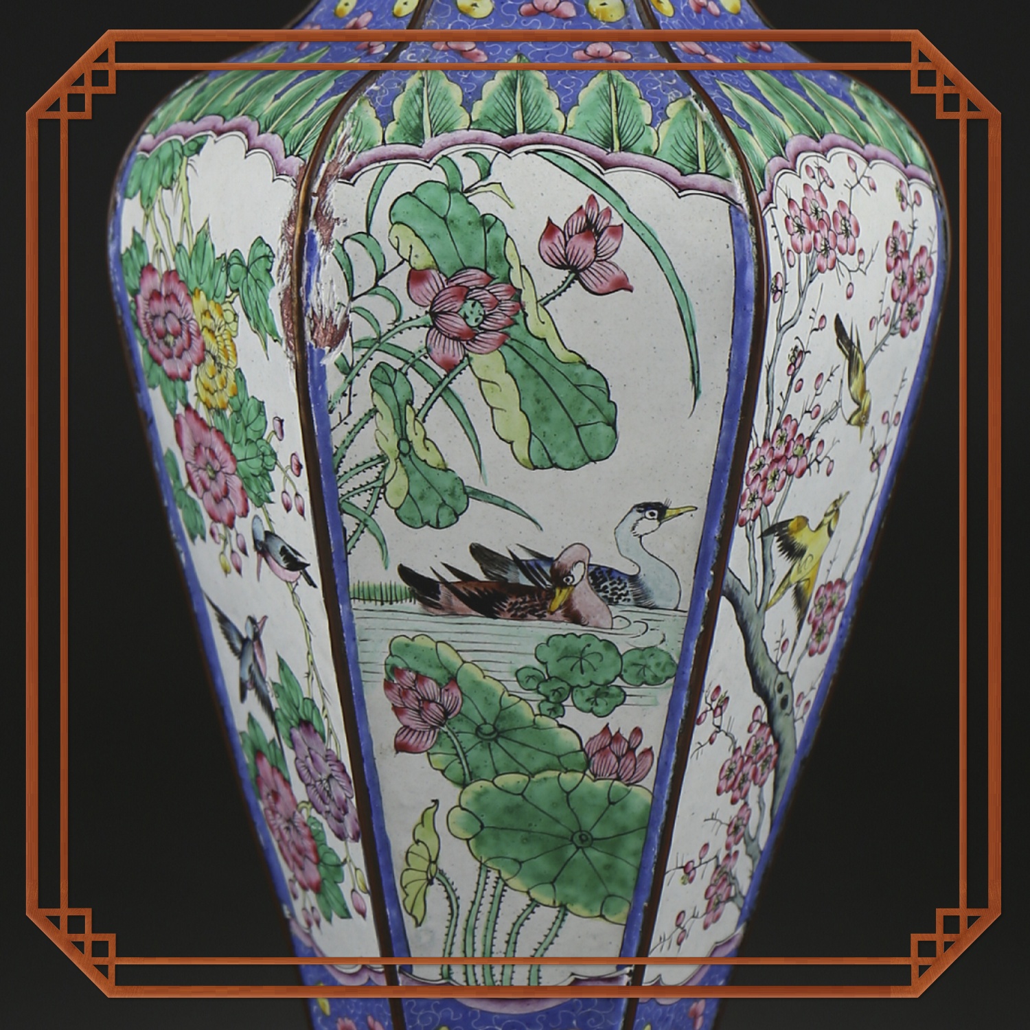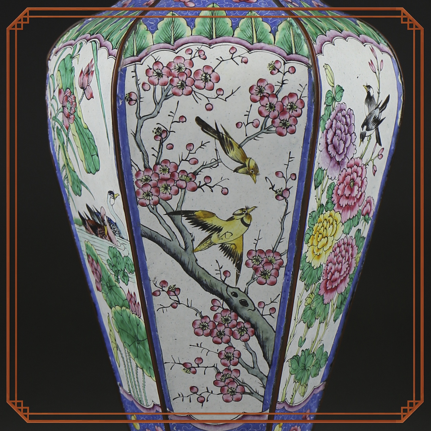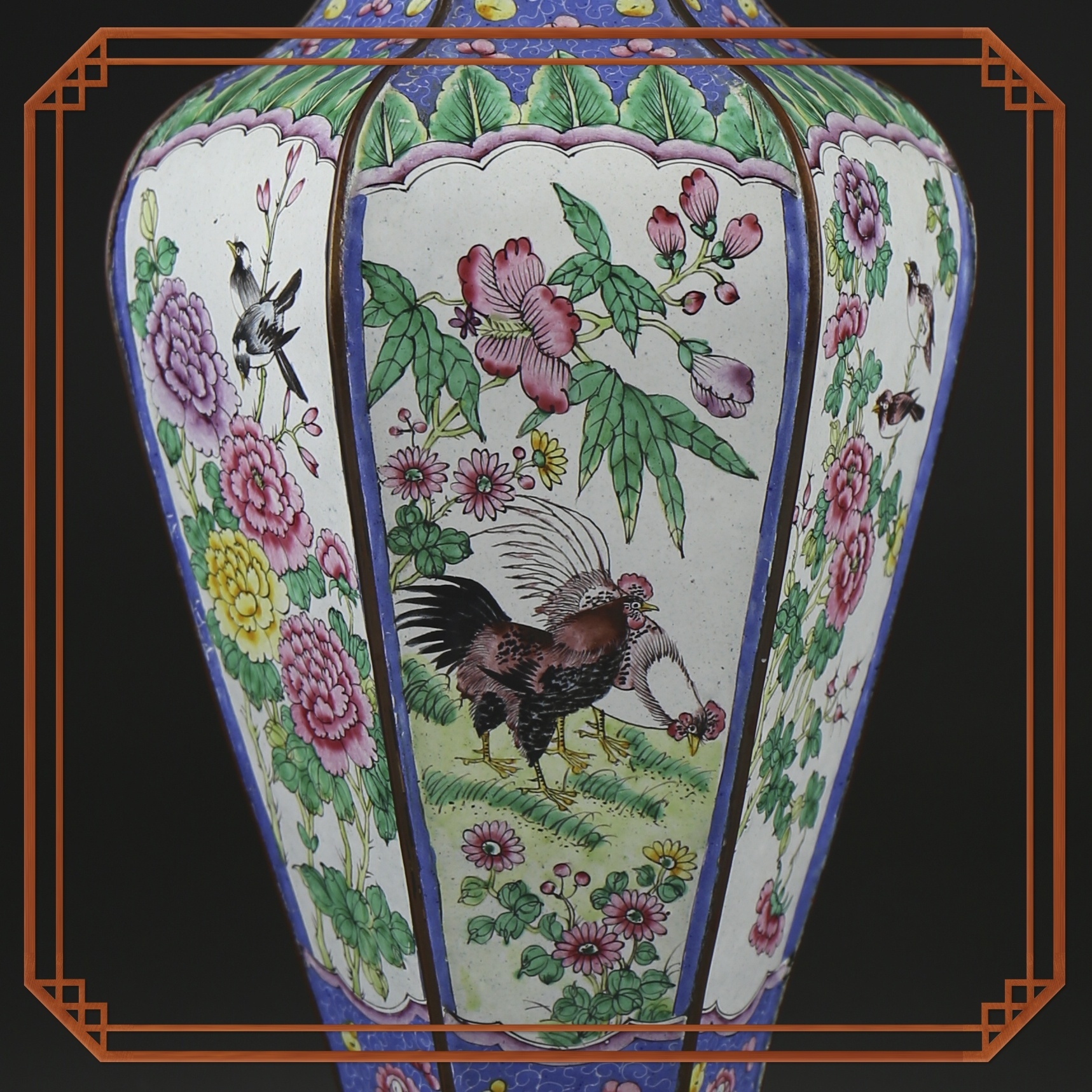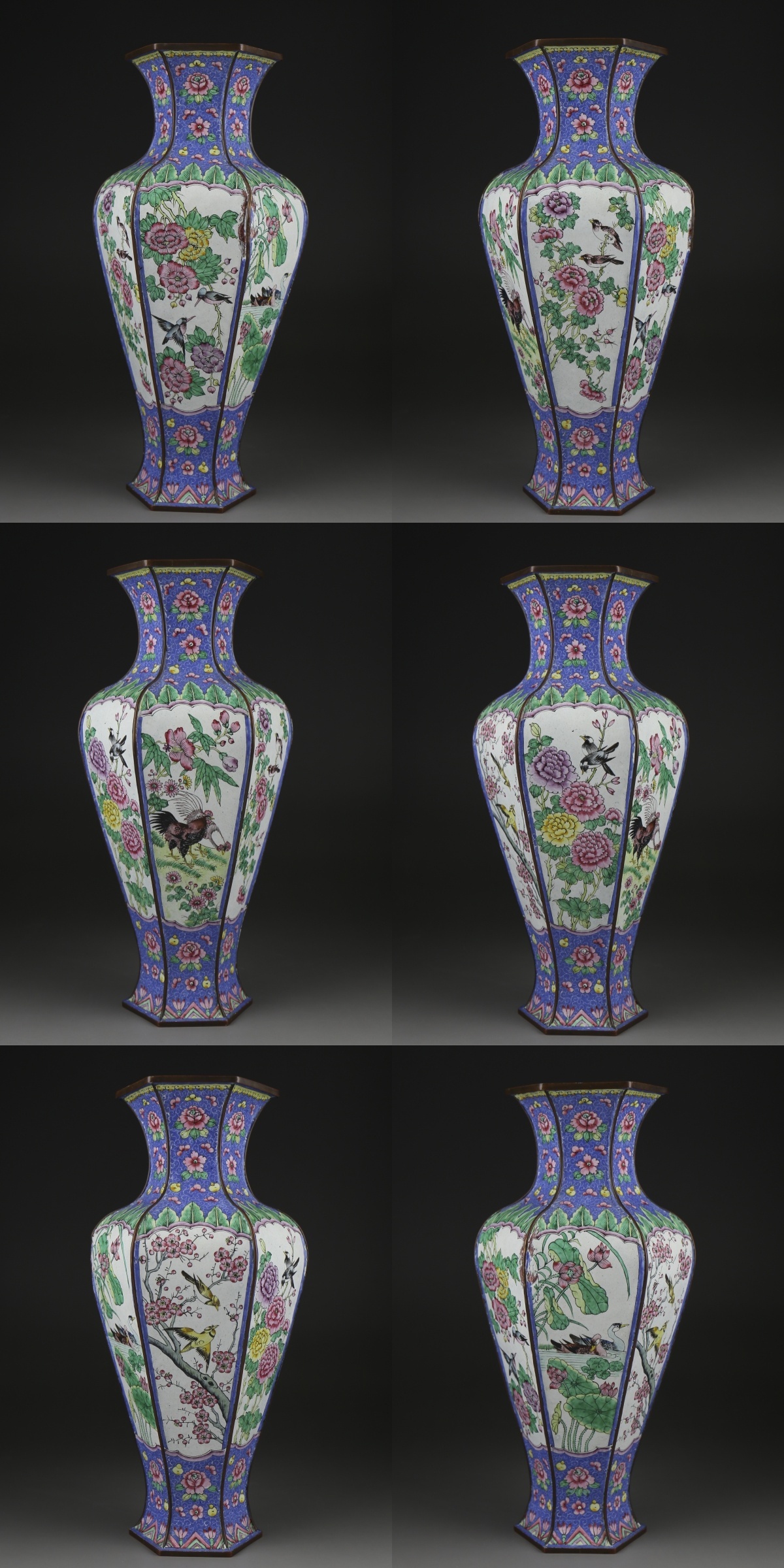 瓶身六面均以珐琅彩绘工艺呈现了