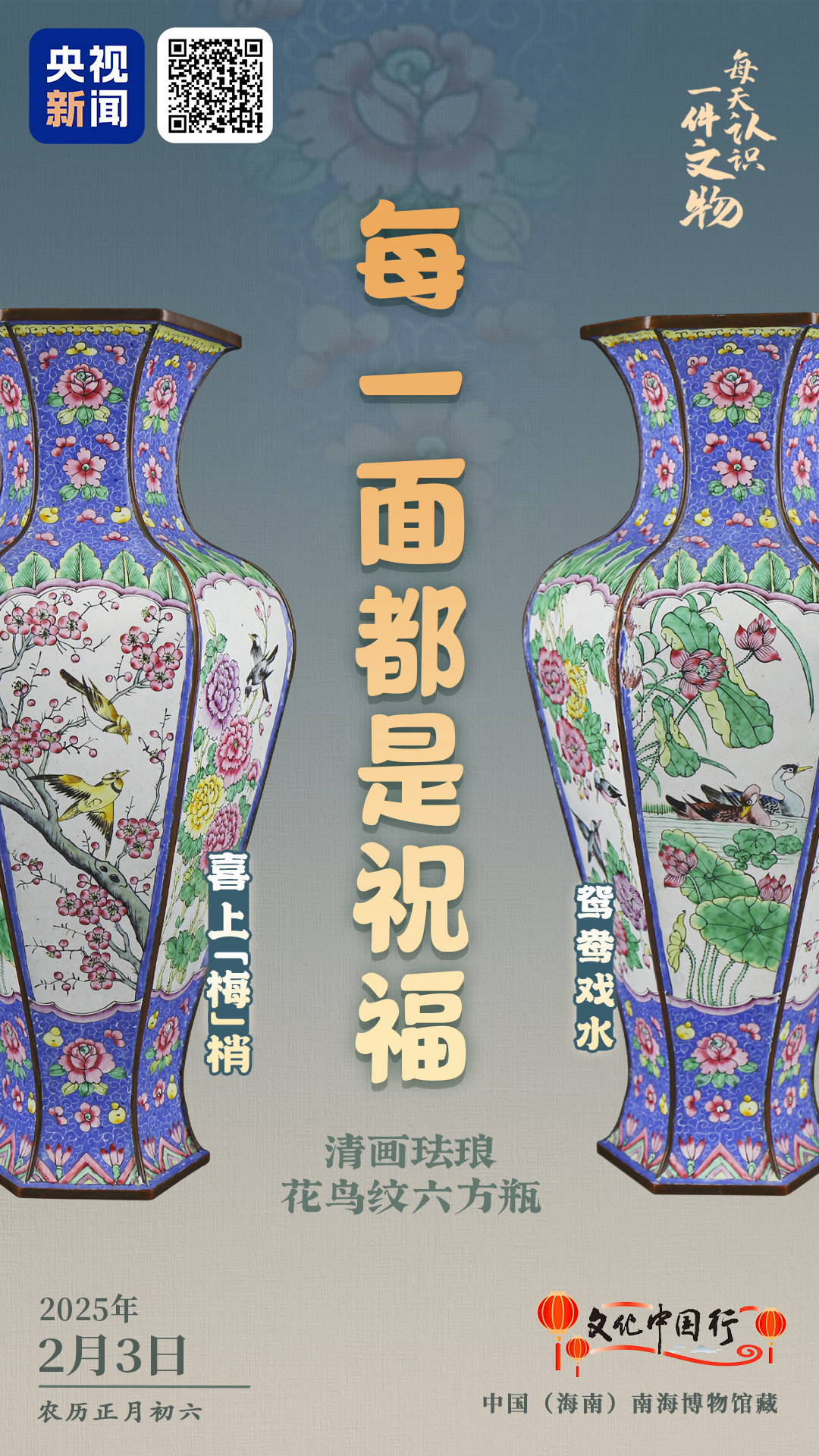 《文博日历》携清画珐琅花鸟纹六方瓶