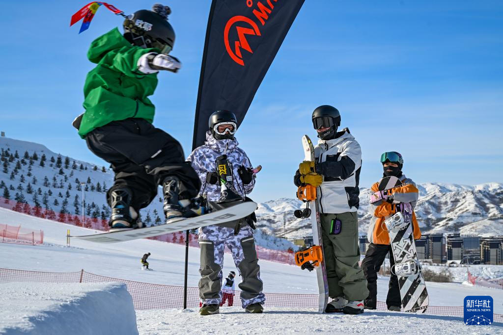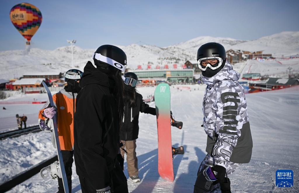 雪友在免费公开课上交流飞越跳台的技巧(1月25日摄)。新华社记者 胡虎虎 摄