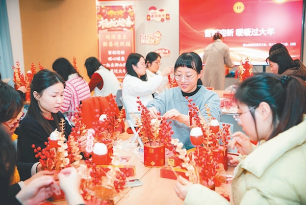 连日来,苏州高新区各级工会持续推进“留新迎新”系列活动,为职工提供更贴心的服务、更温暖的关怀,让职工在高新区度过愉快难忘的新春佳节。浒墅关经开区(镇)总工会联合经开区妇工委、阳山泊寓开展“写春联、包饺子”活动,通安镇总工会在通安富民培训基地举办“花式贺新春 巧手添年味”新年花环制作活动,狮山横塘街道总工会携手非公委、团工委、妇联前往企业慰问坚守岗位的职工。活动现场,职工们手法娴熟地包饺子,兴致勃勃地制作花环、新春抱抱桶。大家围坐在一起,回顾一年来的收获,展望新一年的幸福生活,现场欢声笑语、其乐融融。(江苏工人报 苏工萱)