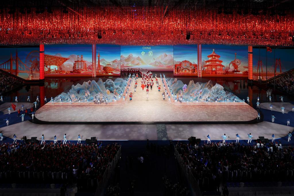 2月7日晚,第九届亚冬会开幕式在哈尔滨盛大举行。