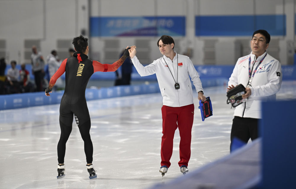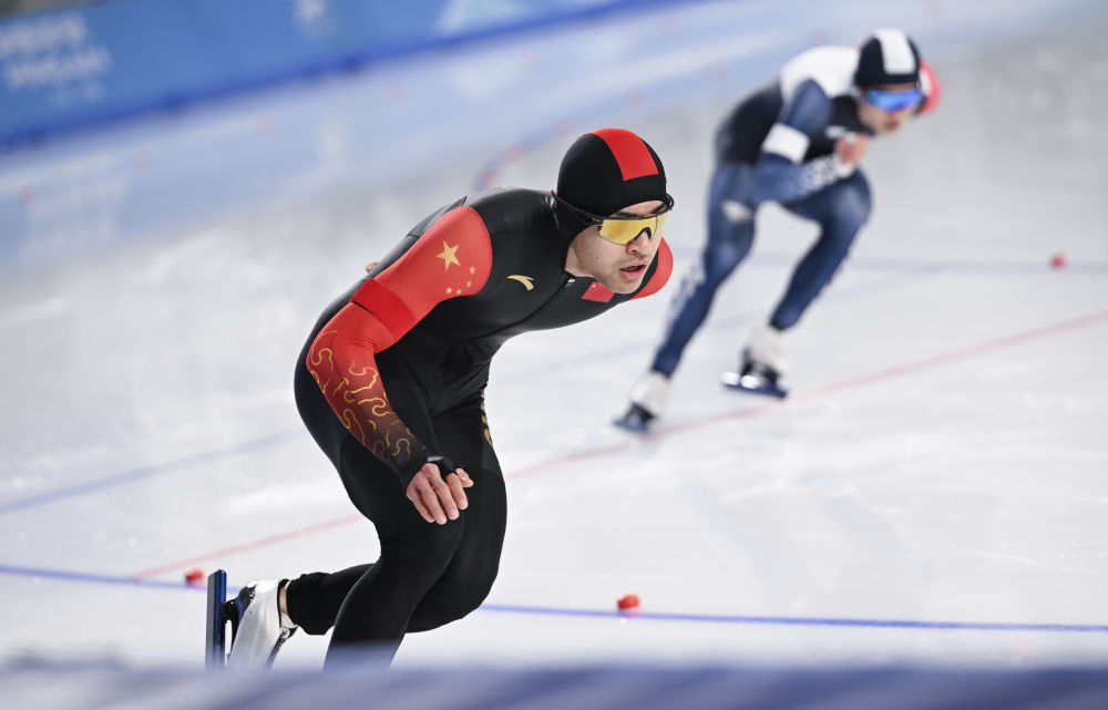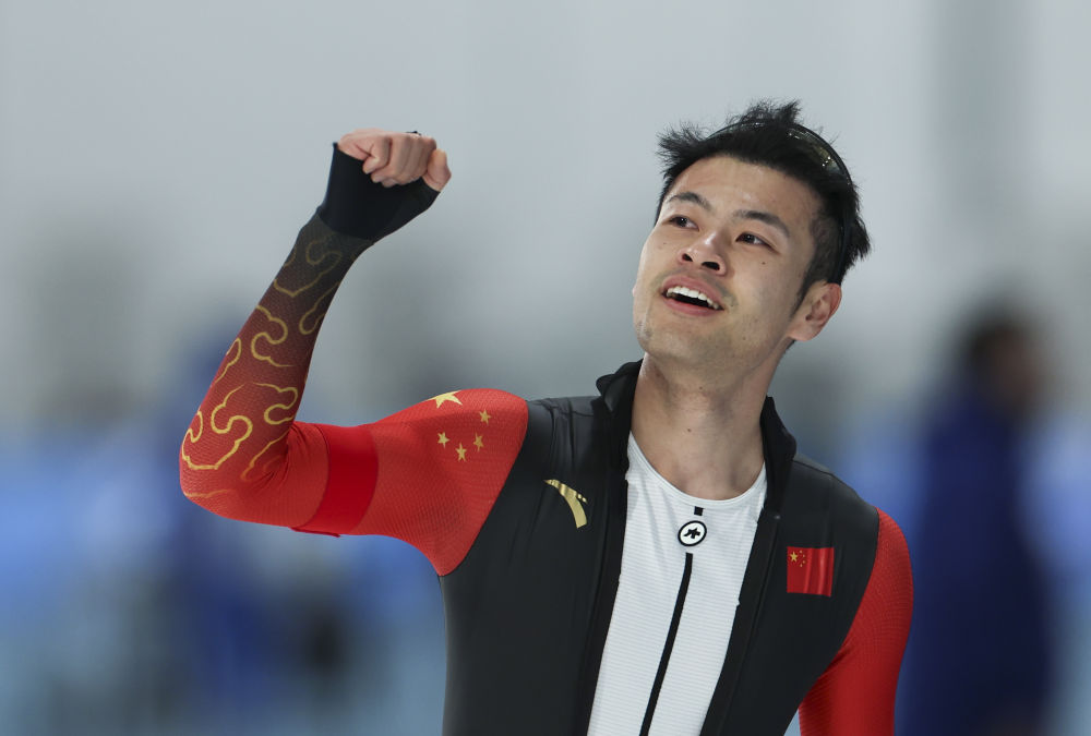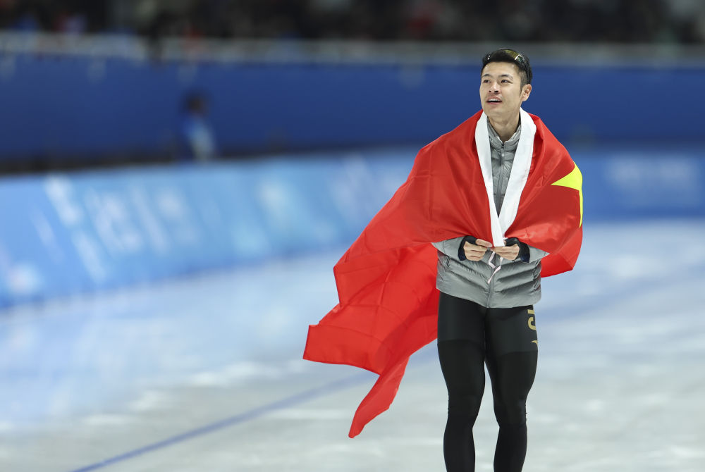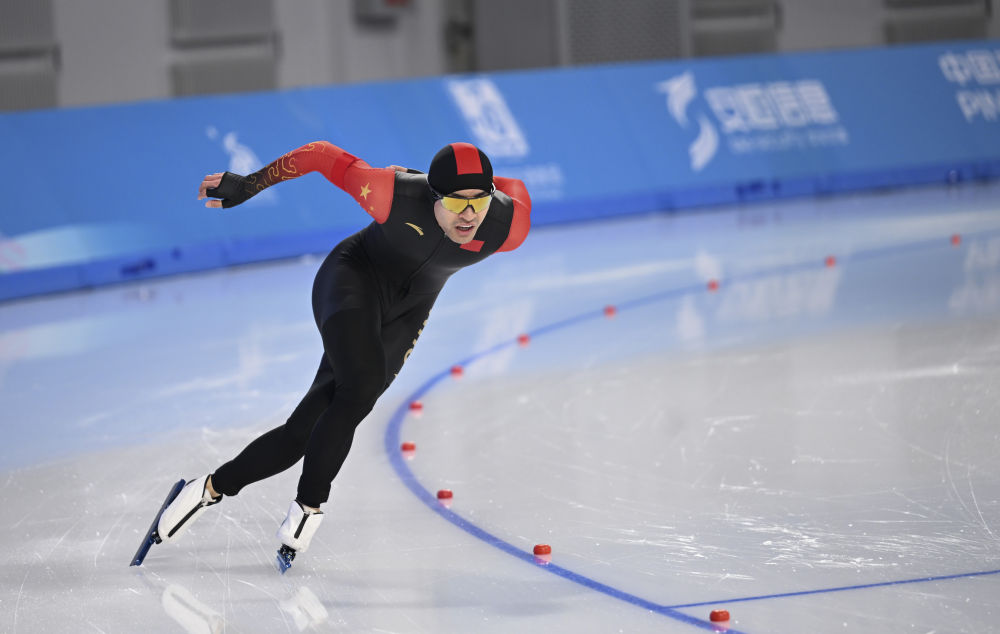 2月8日,在哈尔滨举行的第九届亚冬会速度滑冰男子1500米决赛中,中国选手宁忠岩获得冠军。