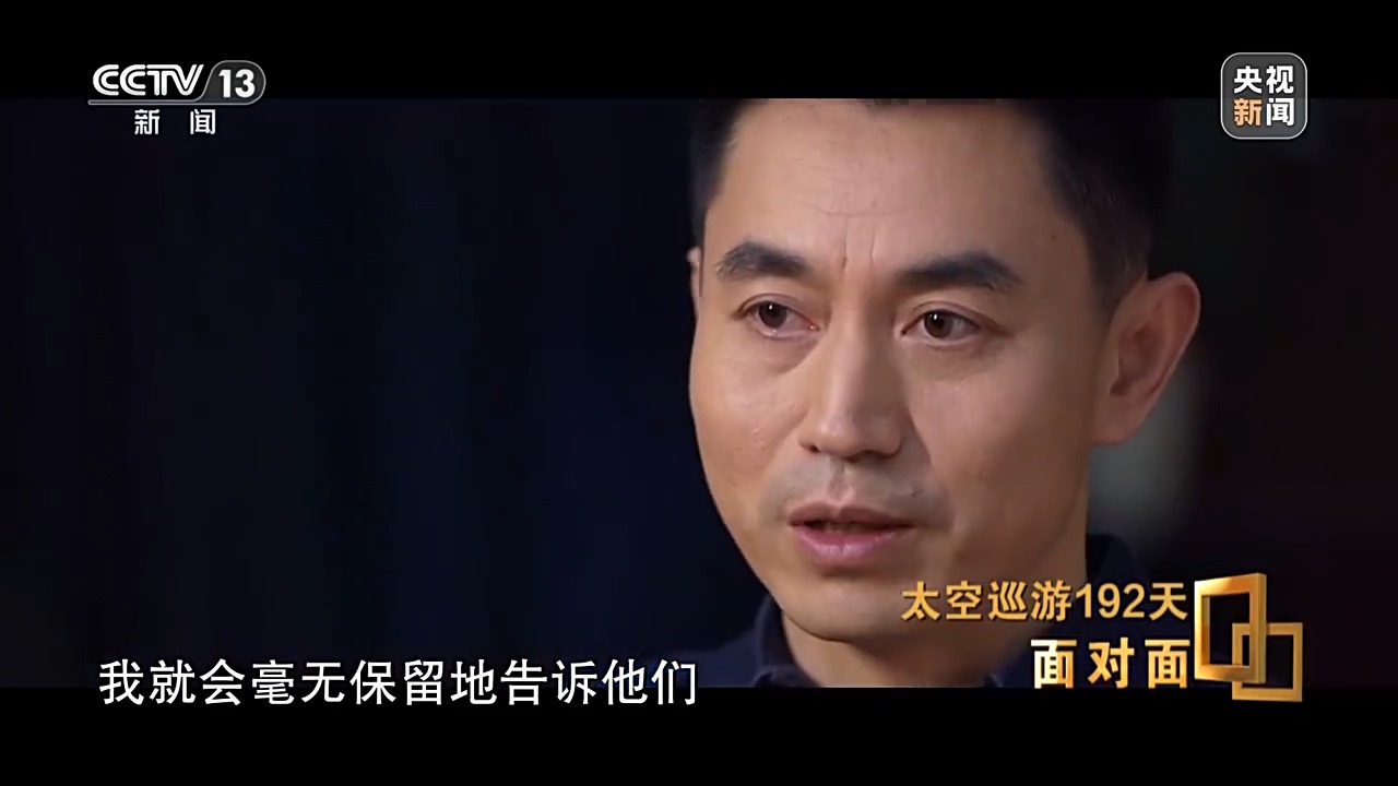 叶光富:当然,这个是在地面,就是任务之前我就要告诉他们,我们就是一代代去传承。对于这两位新同志,我对他们在任务可能出现的问题,我就会毫无保留地把我所经历的,所看到的,所感受到的东西第一时间告诉他们,尽可能地让他们减少走弯路,也尽可能让他们避免在这个地方踩坑,这个也是作为指令长,我觉得我应该做到的。