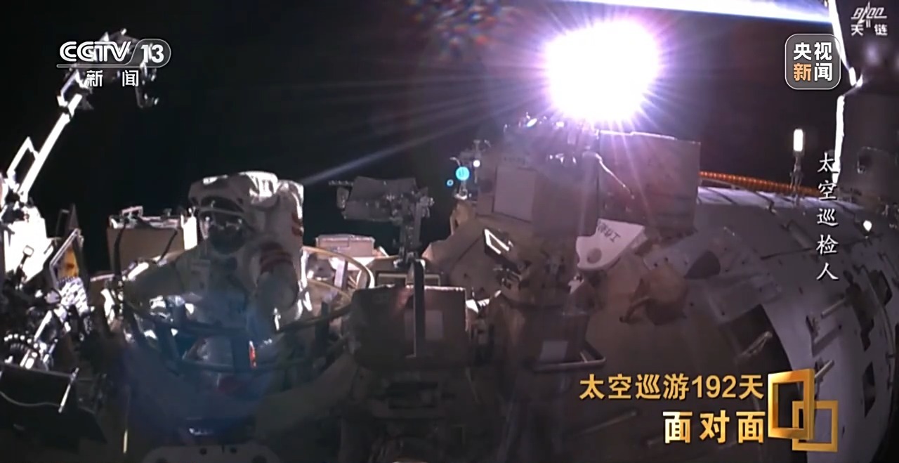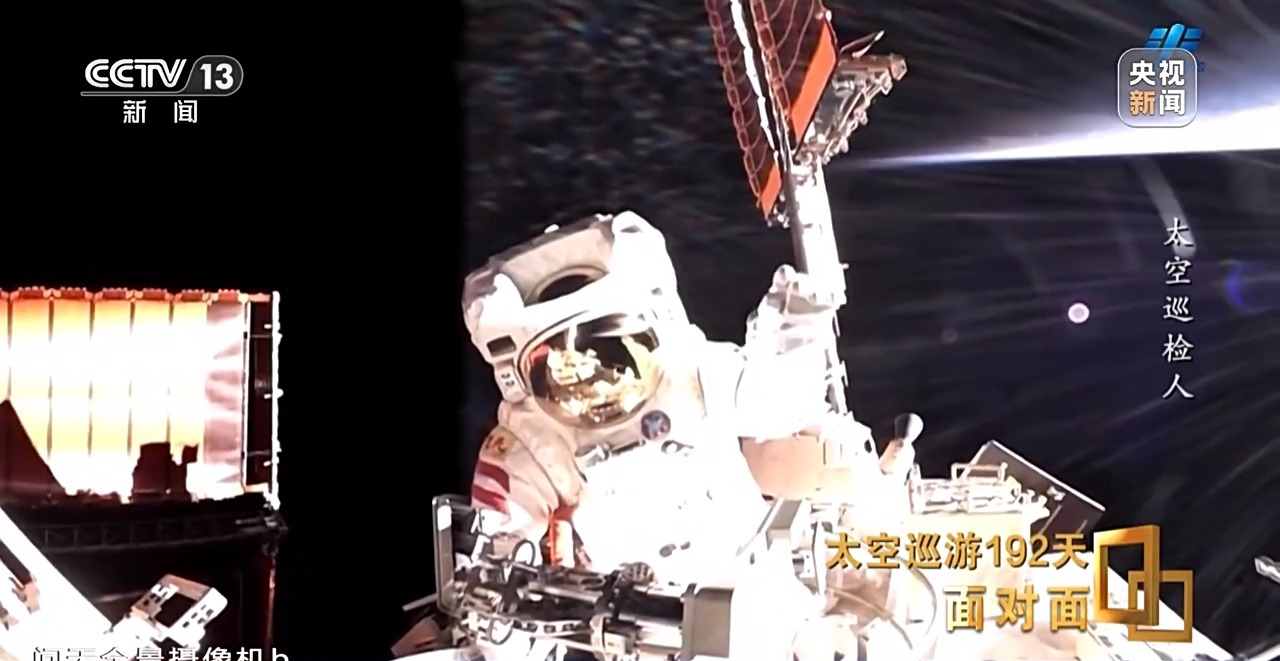 随后,航天员李广苏顺利出舱,他需要沿舱壁自主攀爬,对舱外设备设施进行巡检。