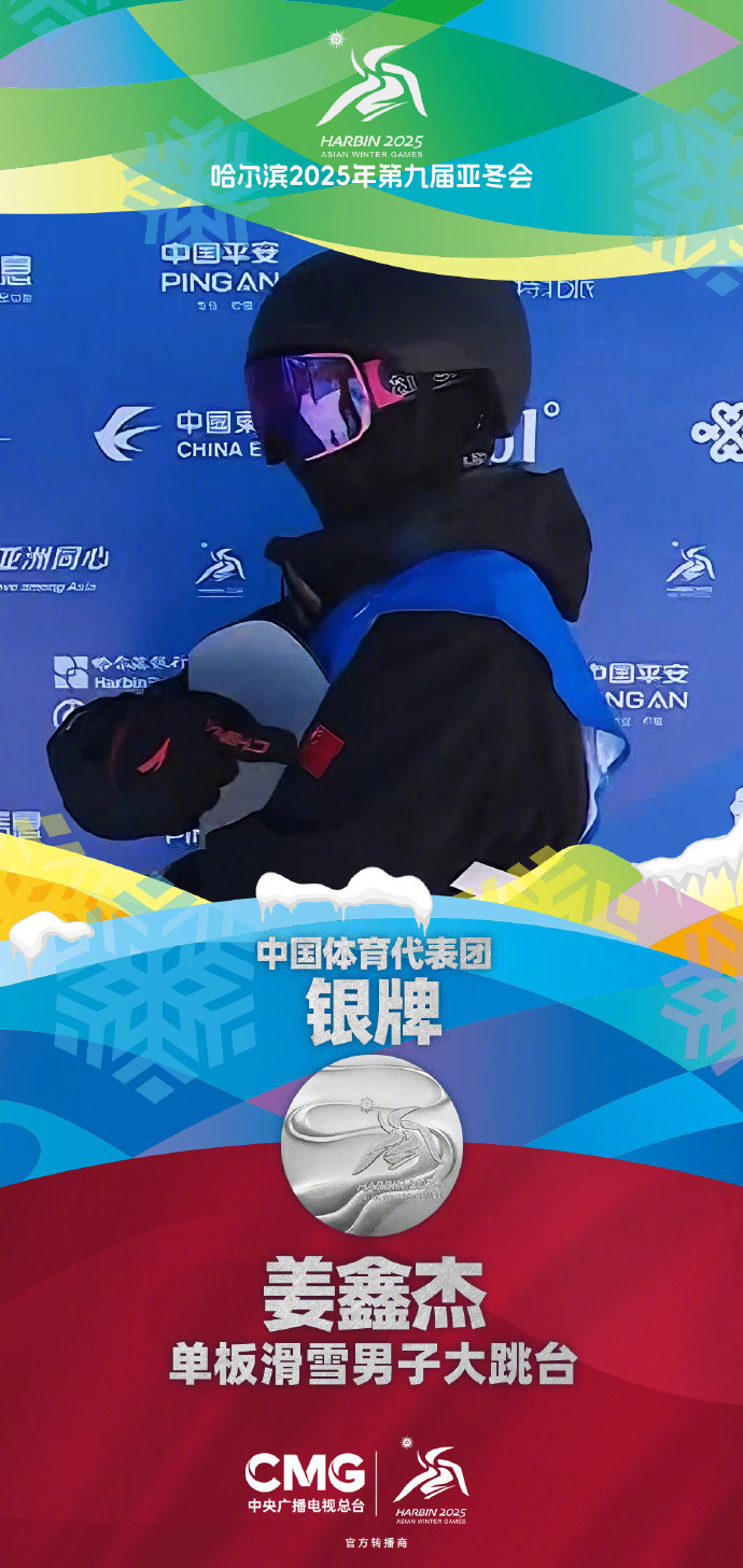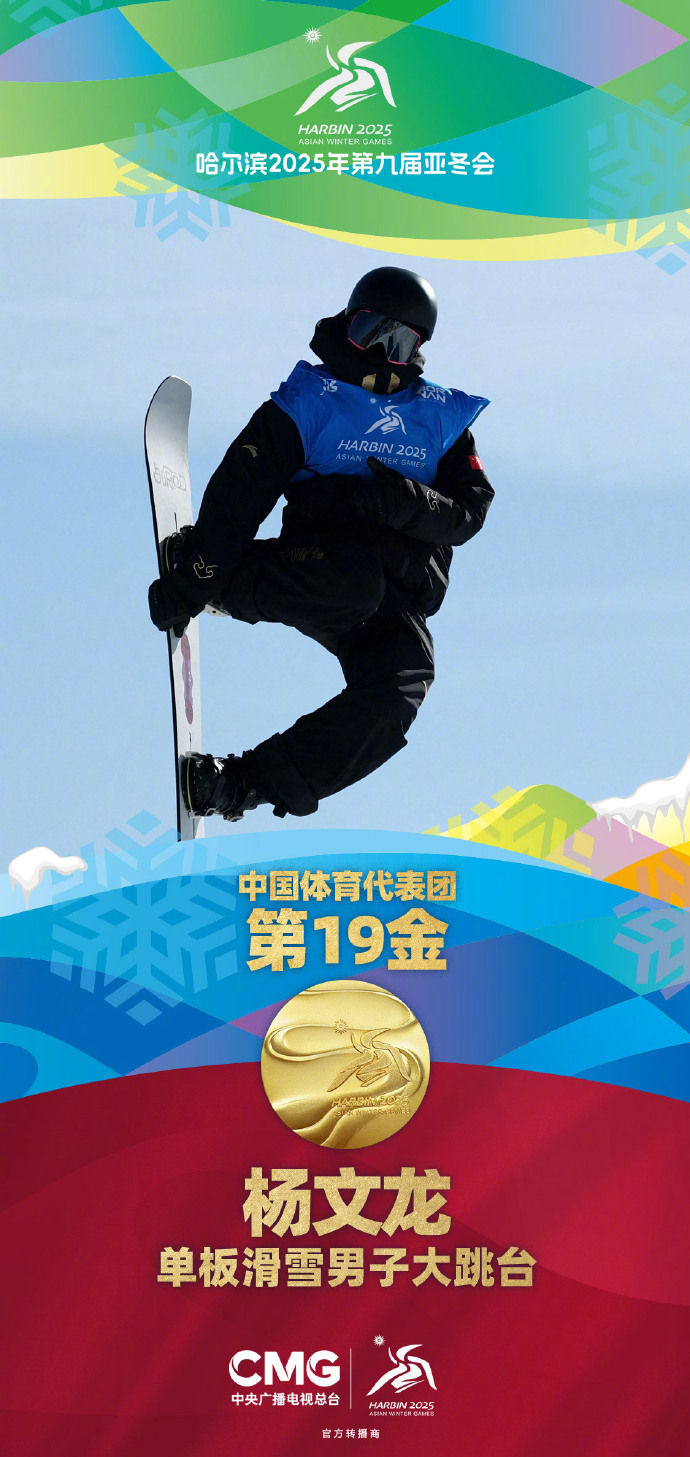 2月10日,哈尔滨亚冬会单板滑雪男子大跳台决赛,杨文龙凭借出色的表现,以193.25分的成绩夺得金牌。姜鑫杰获得银牌。