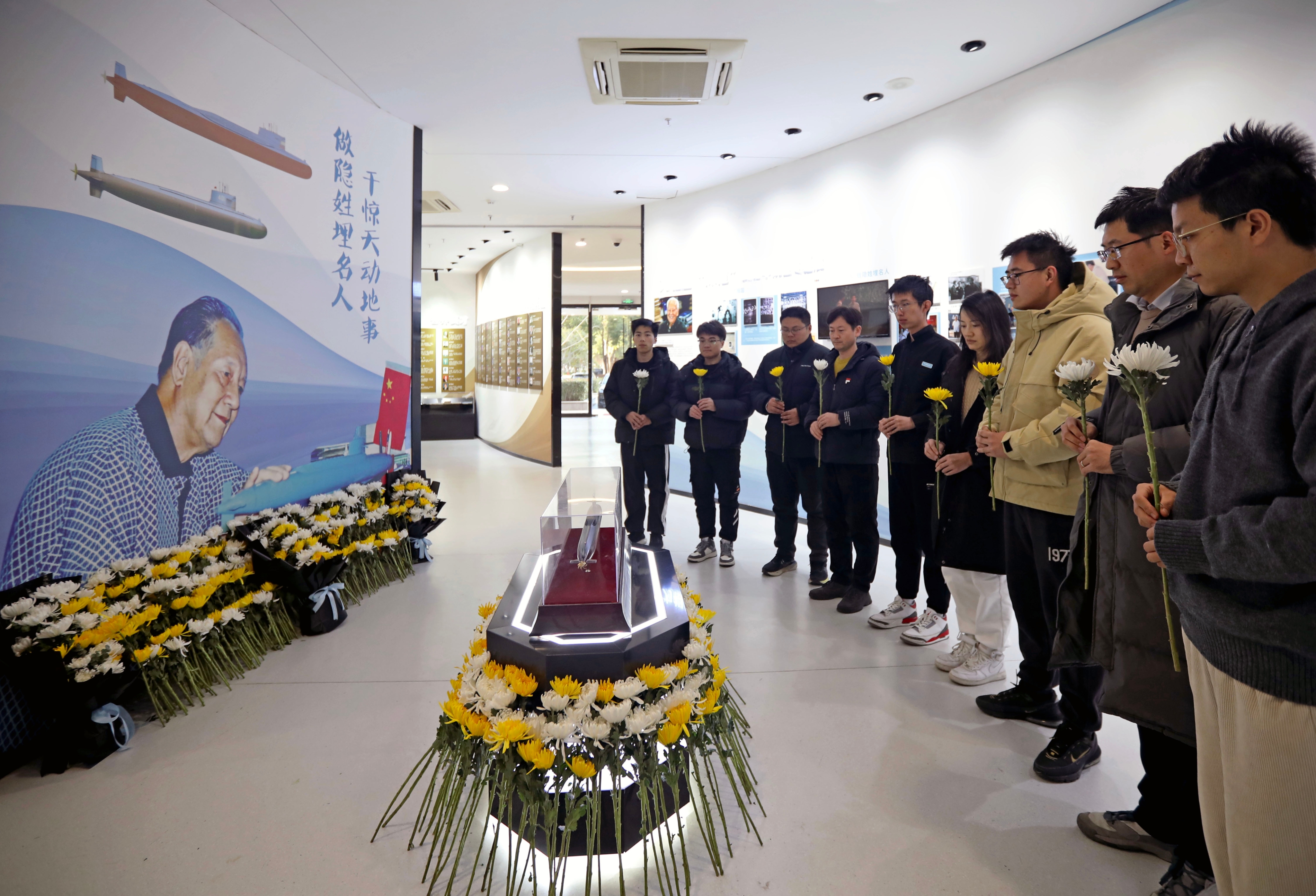 2月8日,黄旭华吊唁仪式在第七一九研究所总体楼二楼大厅设置的灵堂举行。新华社记者 熊琦 摄