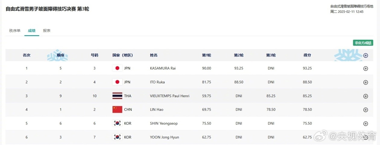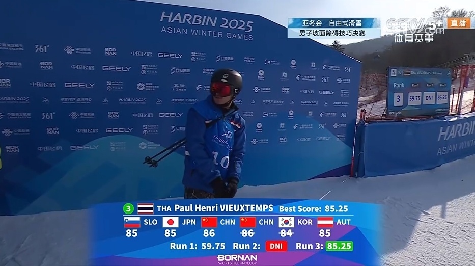 哈尔滨亚冬会自由式滑雪男子坡面障碍技巧决赛,泰国运动员保罗·亨利·维厄当以85.25分收获一枚铜牌,这也是泰国亚冬会历史上的首枚奖牌,实现零的突破!