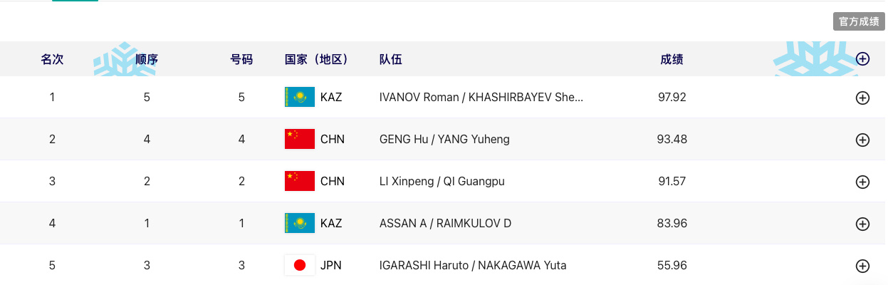 中新网哈尔滨2月10日电(记者 郭超凯 岳川)在11日举行的哈尔滨亚冬会自由式滑雪男子空中技巧双人同步决赛中,哈萨克斯坦组合罗曼·伊万诺夫/谢尔佐德·卡希尔巴耶夫夺得金牌,两对中国组合耿虎/杨雨衡,李心鹏/齐广璞分别摘得银牌、铜牌。