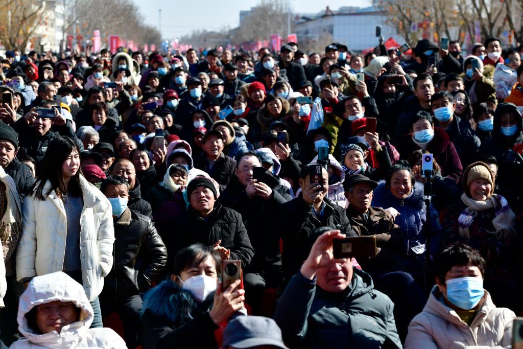 寒风未能阻挡人们赶会的热情。当天一大早,戴着各色帽子,穿着羽绒服、厚棉衣的各地群众陆续来到这里,露天主会场座无虚席。有的孩童咬着糖葫芦,骑在父亲肩头看戏;有的观众只顾往舞台方向凑,棉帽挤歪了浑然不觉。不一会儿,马路边、墙角旁就站满了人。