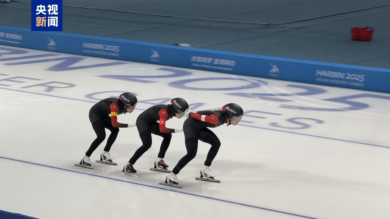 2月11日,哈尔滨亚冬会速度滑冰女子团体追逐决赛,由阿合娜尔·阿达克、韩梅、杨滨瑜组成的中国队夺得金牌。