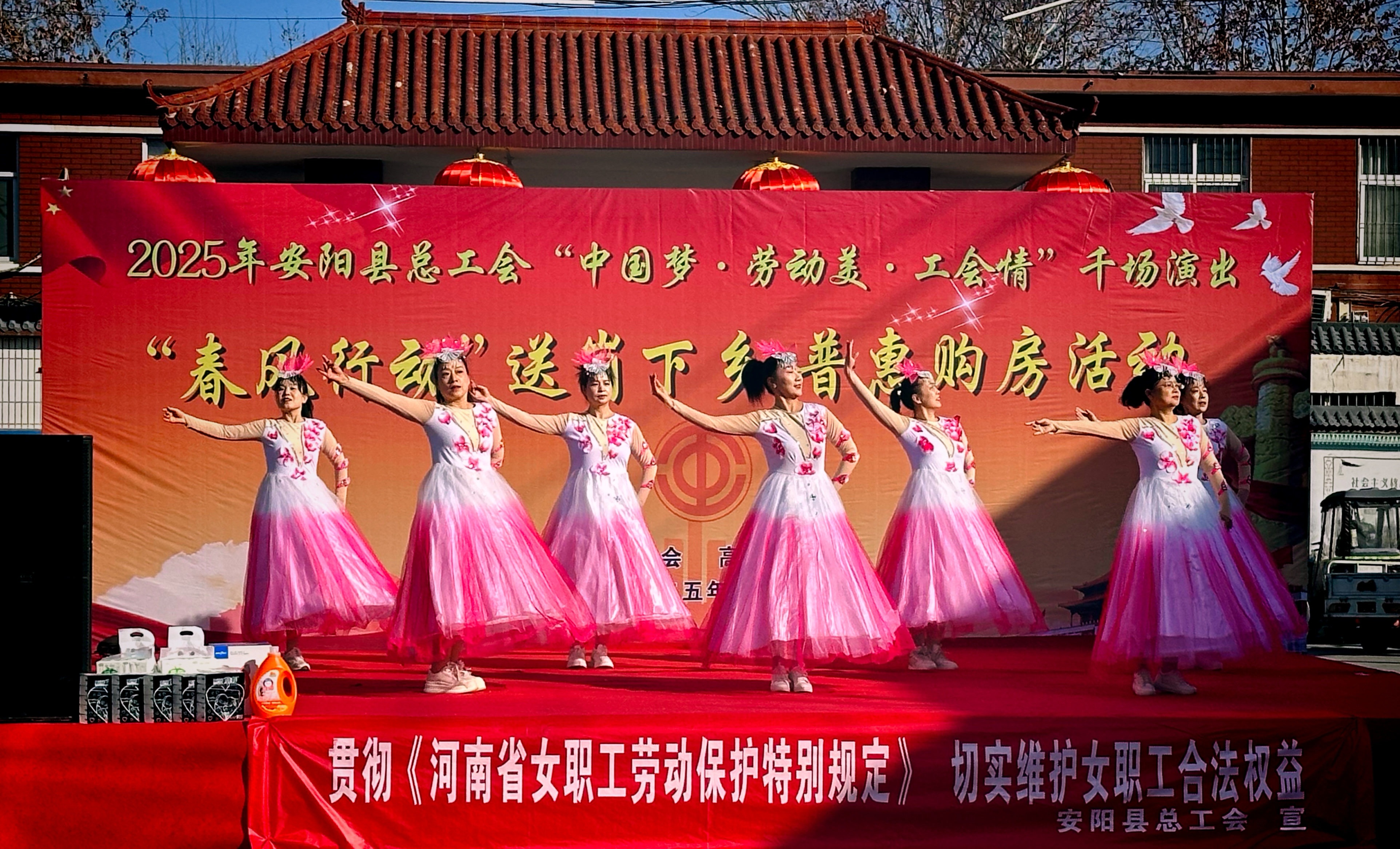 2月7日上午,安阳县总工会联合高庄镇总工会在高庄镇政府前街举办2025年安阳县总工会“中国梦·劳动美·工会情”千场演出——“春风行动”送岗下乡暨普惠购房活动。