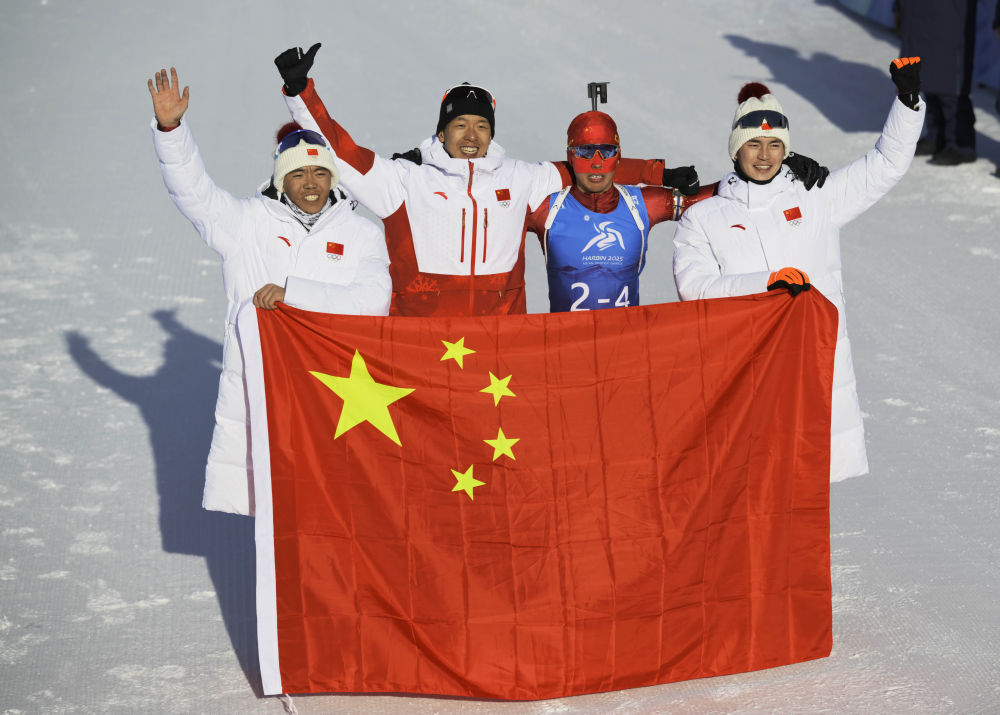 2月13日,在第九届亚冬会冬季两项男子4×7.5公里接力比赛中,中国队获得季军。