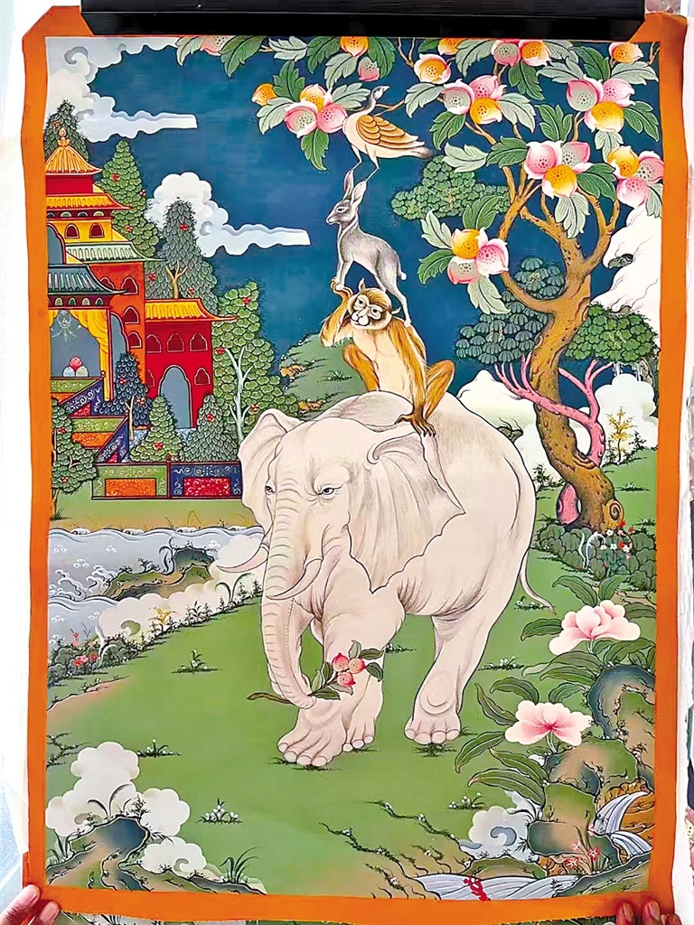 “那段时间是最难熬的,每天睁开眼除了吃饭,其他时间都在画画。”洛追告诉记者,当他真正开始学习时,才深刻体会到要想成为唐卡手艺人,需要付出更多努力。“也曾想过放弃,但还是咬咬牙坚持了下来。”说到这里,洛追有些腼腆地笑了笑。