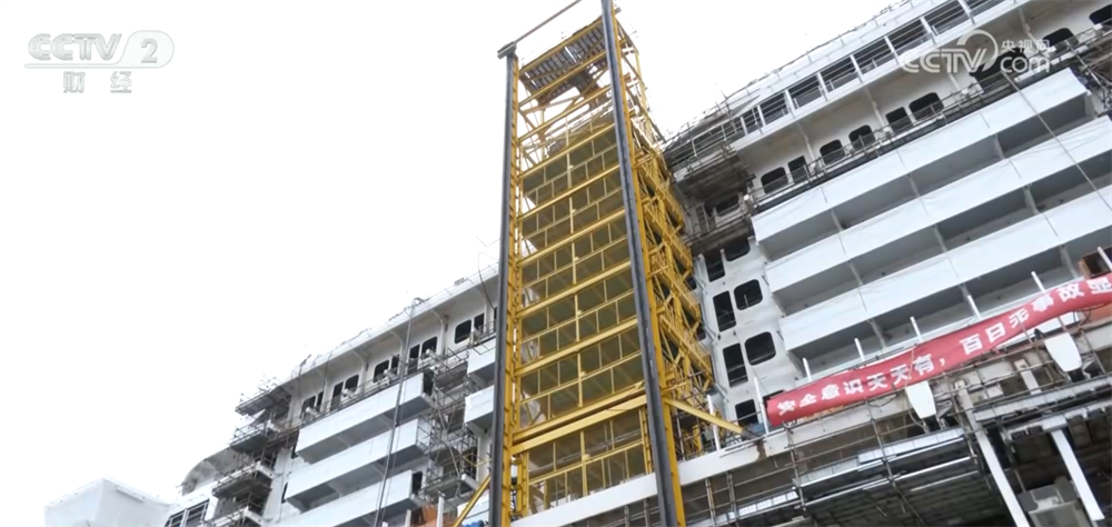 现在邮轮建造中还用上了许多如AR扫描、流程机器人这样的“黑科技”,创新的建造方式也提升了整体作业效率。船体外侧,一台从底部贯穿至顶部的醒目黄色升降装置即将投入使用。有了它的帮助,很多房间舱室就可以提前在外部的工厂完成批量生产。
