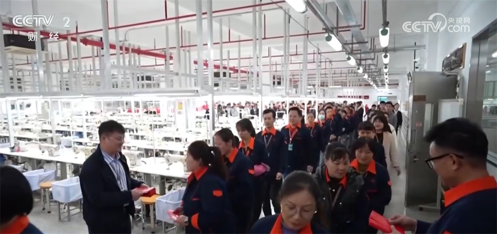 上午八点多,在广东惠州的这家服装生产企业,三百多名工人拿着刚刚收到的开工红包,高高兴兴地走进厂区。由于订单多,春节之后,很多工人都提前返岗了。