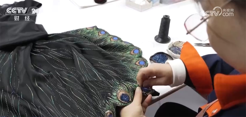 龚清娥是这家服装生产企业的钉珠工人,她说今年他们的国潮服装订单增幅最大,而且客户对制作工艺的要求也是越来越高了。