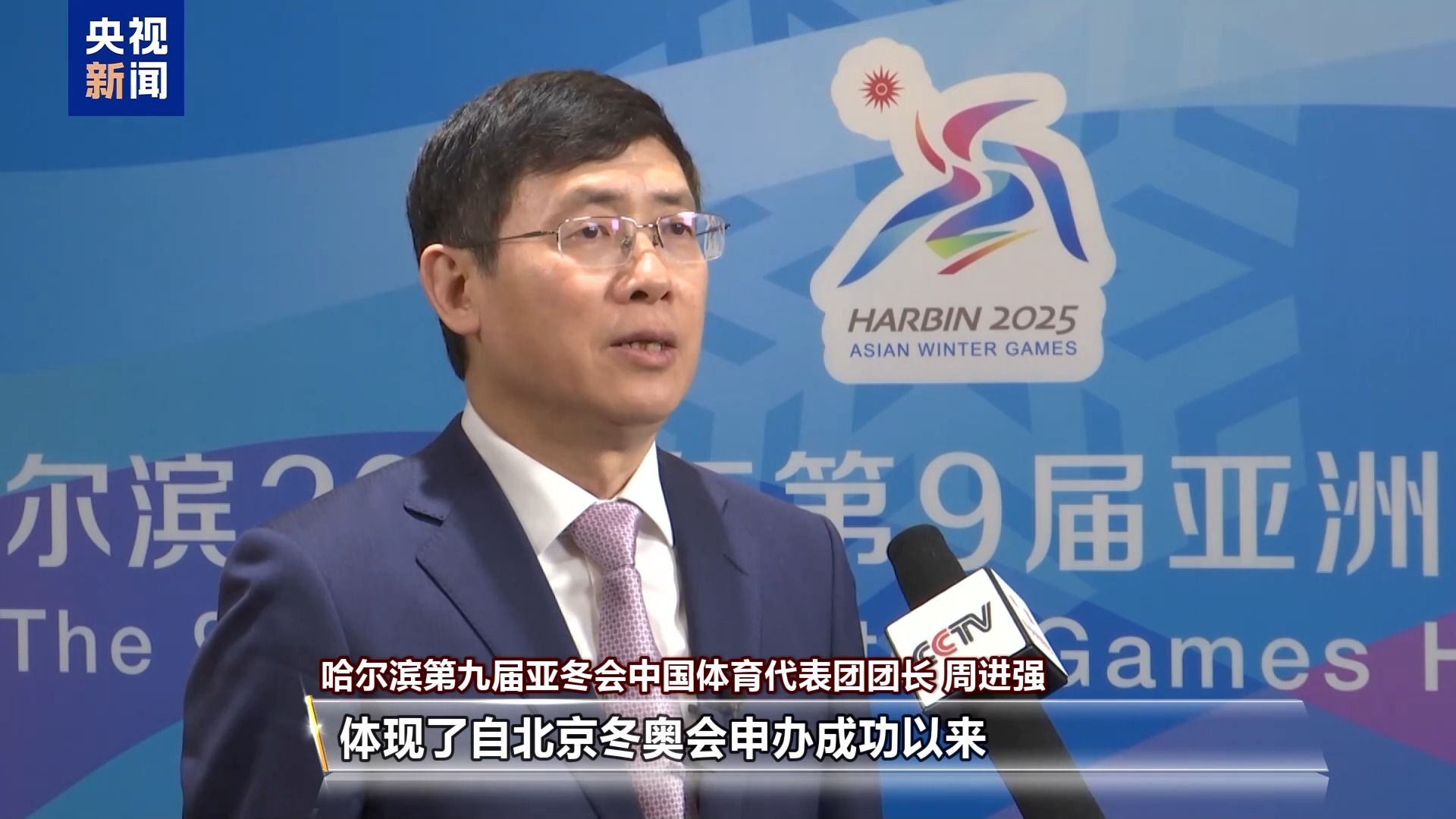 哈尔滨亚冬会中国体育代表团团长 周进强:体现了自北京冬奥会申办成功以来,我国冰雪运动全面发展态势,冰上、雪上项目发展日渐均衡、齐头并进,原有“冰强雪弱”的局面正在改变为冰上项目、雪上项目均衡发展。