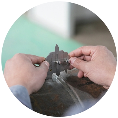 刘晓辉认真测量以判定该焊缝外观尺寸是否符合标准