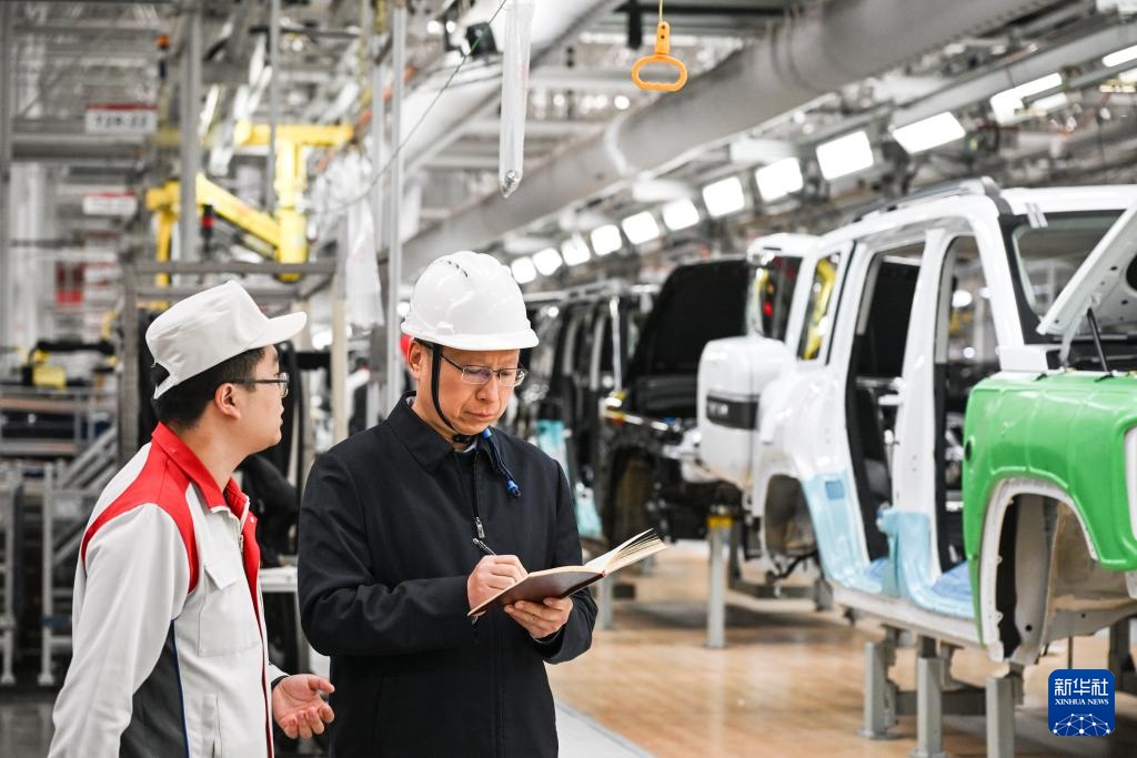 傅国涛(右)在长城汽车重庆永川工厂智能化生产车间调研(2025年2月11日摄)。新华社记者 王全超 摄