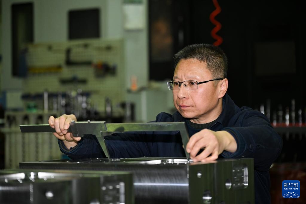 这是在重庆红江机械有限责任公司加工车间拍摄的全国人大代表傅国涛(2025年2月11日摄)。新华社记者 王全超 摄