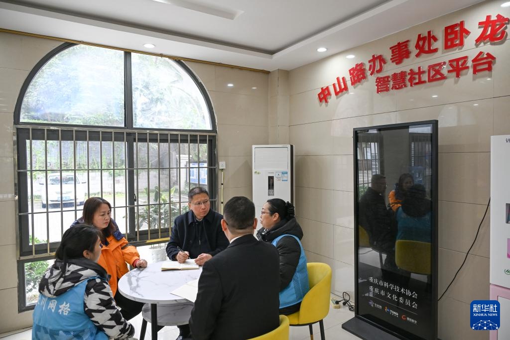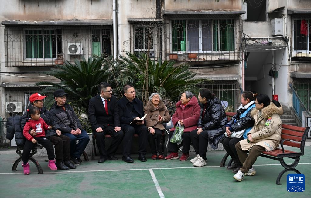 傅国涛(中)在重庆市永川区中山路卧龙凼社区调研基层治理(2025年2月11日摄)。新华社记者 王全超 摄