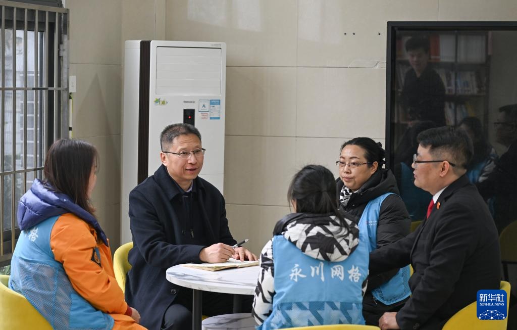 傅国涛在重庆市永川区中山路卧龙凼社区调研基层治理(2025年2月11日摄)。新华社记者 王全超 摄