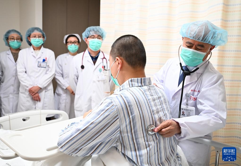 在苏州大学附属第一医院血液科,吴德沛在病房查房时给患者检查(2025年2月17日摄)。新华社记者 季春鹏 摄
